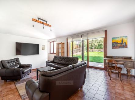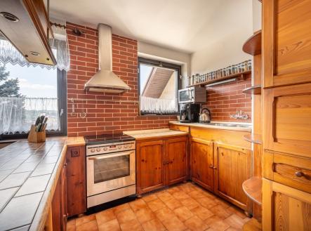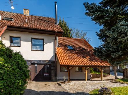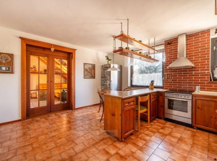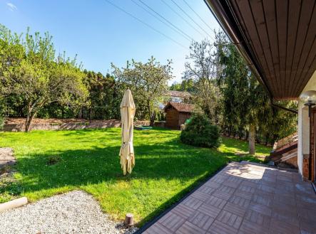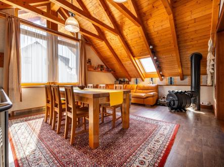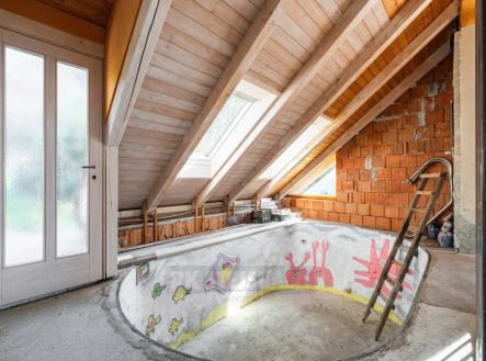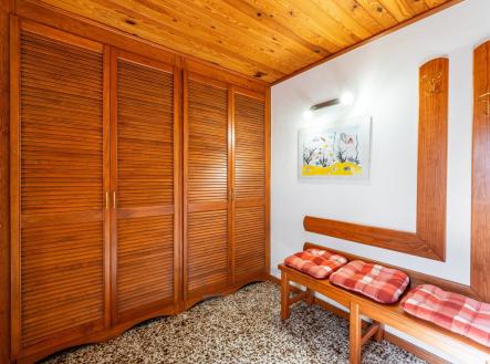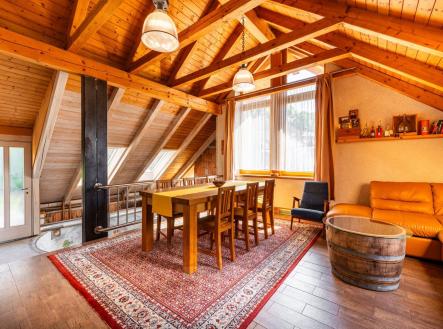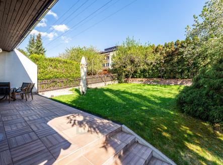 Prodej velice atraktivního, prostorného RD, v členění 5 a více + 1 s obsáhlým příslušenstvím a větší, plně zařízenou a kultivovanou zahradou, situovaný v novější zástavbě RD v okrajové části obce, klidná část obce, žádaná lokalita Horní Brána, ulice Stinná, Český Krumlov. Prostorný a důmyslně řešený Rodinný dům se samostatným apartmánem a prostornou udržovanou a plně zařízenou zahradou, soubor nemovitostí ve výborném stavu, vhodný k okamžitému užívání. Stručný popis dispozice domu: Snížené přízemí – samostatně přístupný, prostorný apartmán 1+kk, se samostatnou koupelnou s WC, umyvadlem a sprchovým koutem, prostorná garáž do L dílenskou částí, větší prádelna s oknem, s vanou, WC, umyvadlem a sprchovým koutem, sklepní místnost, technický prostor s elektrokotlem a s technickým zázemím pro vnitřní bazén, schodiště do obytných podlaží domu, Přízemí – vstupní veranda s vestavěnými, předsíňovými a šatními skříněmi, schodišťový prostor, Zvýšené přízemí – schodišťová podesta se vstupem do obytné části, zádveří, samostatné WC s umyvadlem, prostorná kuchyň s kuchyňskou a jídelní částí, obývací pokoj s krbovými kamny, s proskleným štítem a s otevřeným podhledem do střešní části, otevřená stěna se zábradlím k vnitřnímu bazénu, obývací pokoj se vstupem do zahrady a na zahradní terasu, příčka s otevřeným podhledem pod stropem a otevřeným vstupem do ložnice, ložnice s oknem do zahrady, Patro - příchozí podesta nad schody, středová vstupní místnost, koupelna se střešním oknem, s vanou, umyvadlem a WC, samostatná ložnice se střešním oknem, samostatná ložnice se štítovým oknem, samostatná ložnice se štítovým oknem a se schody do spacího podkroví, vstup do půdní části podkroví, Stručný popis členění a zařízení zahrady: celá zahrada ohraničena, dřevěný plot, vjezdová brána, vstupní brána, asfalt a kamenné dláždění vjezdové příchozí nádvoří, kamenné dláždění pochozích ploch, okrasné stromy a keře, zatravněná plocha, dřevěný zahradní domek, zahradní terasy, zahradní kamenné zídky. Nemovitosti připojeny na kanalizaci, vodovod a elektřinu, s možností připojení plynu. Doporučuji: příznivá cena, zcela dokončený soubor nemovitostí, bez nutnosti zásadních oprav či úprav, klidná část obce, žádaná lokalita, v blízkosti centra i přírodních částí města.