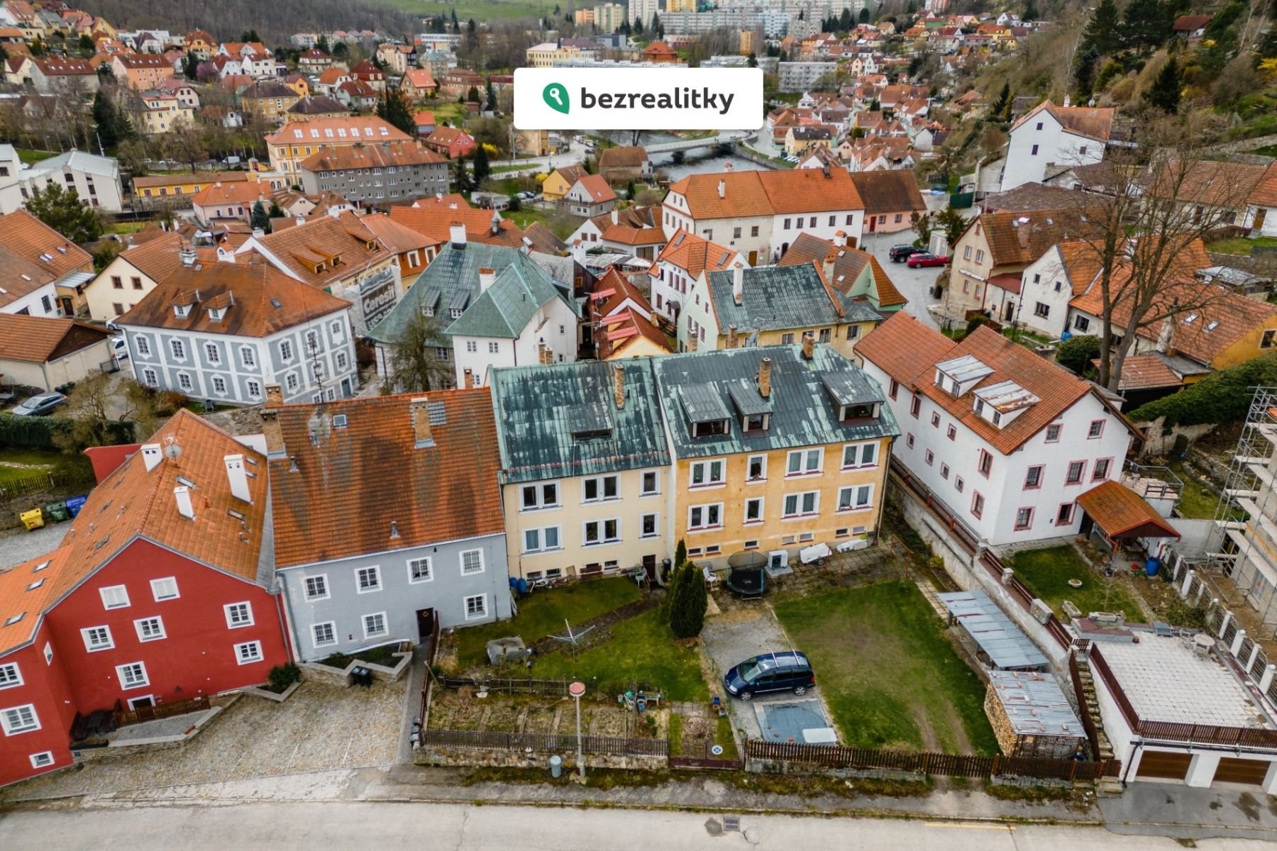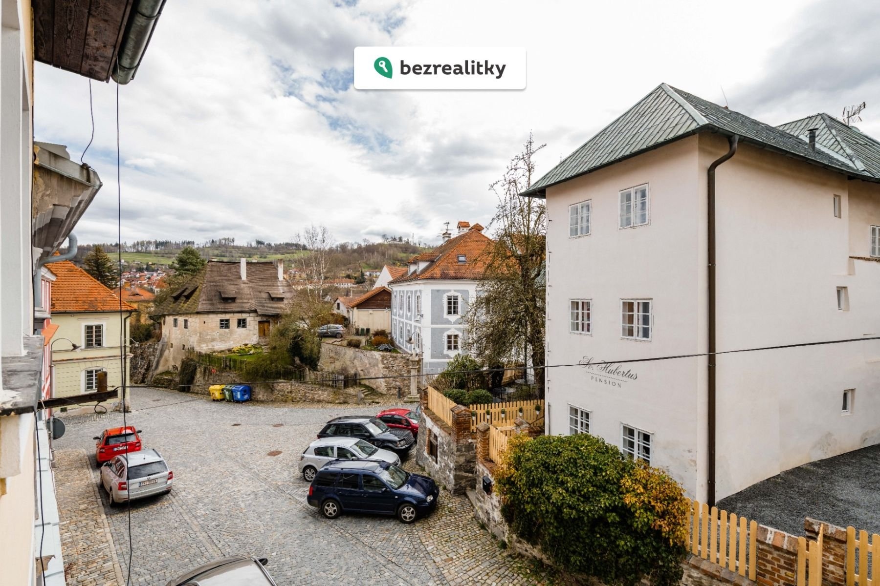 Nabízím prodej krásného bytu v centru Českého Krumlova s výhledem na celé historické centrum. Byt se nachází na Plešiveckém náměstí. Jedná se o bytovou jednotku č.4 v bytovém domě. Pouhé 4 minuty chůze od hlavního náměstí (Svornosti), zároveň však v poslední ulici, kam se smí autem bez povolení vjezdu. Mezonetový byt se nachází v 2. nadzemní podlaží, má dispozici 3+1 a podlahovou plochu 96 m2. Za vstupem do bytu se nachází předsíň s velkorysou vestavnou skříní, v bytě je zděné jádro, ve kterém je koupelna spojená s WC, dále nová moderní kuchyň se zabudovanými spotřebiči. Přes předsíň jsou přístupné 2 pokoje, z pokoje je výhled na celé historické centrum a zámek. Další pokoj v podkroví, v podkroví je dále druhý pokoj, který nemá okno. Dá se tedy vybudováním vikýře vytvořit krásný pokoj a vznikne tak byt 4+1. Součástí prodeje je i platné stavební povolení na vikýř. Z kuchyně a jednoho pokoje v podkroví je krásný výhled na historické domy Plešiveckého náměstí a na Křížovou horu. Vytápí se centrálně, vlastním elektrokotlem, ohřev TUV bojlerem. V domě je nová plynová přípojka. Možnost napojit plynový kotel. V domě se nachází celkem 4 bytové jednotky, polo přízemní sklepy a rozlehlá společná půda. Dále k bytu náleží 3 sklepy o celkové ploše 20 m2 a dále společná zahrada, která má rozlohu 199 m2. Měsíční náklady bez elektrické energie činí cca 2000 Kč (fond oprav, voda, poplatek správcovské firmě Triumfa). Byt lze financovat hypotékou, z jejím vyřízením se zvýhodněnými podmínkami vám rádi pomůžeme. V případě zájmu o prohlídku nebo o více informací mě neváhejte kontaktovat, jedná se o jedinečnou nabídku. Tato nemovitost je určena výhradně přímým zájemcům o koupi. Na inzerát můžete také reagovat přímo na webu Bezrealitky.