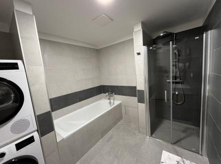 Nabízíme k pronájmu výjimečný plně vybavený byt 3+kk o podlahové ploše 76 m², situovaný ve 4. patře bytového domu s výtahem, v Českém Krumlově. Jedná se o byt pro klienty, kteří hledají vysoký standard bydlení, komfort a soukromí. Interiér bytu byl kompletně navržen a realizován ve spolupráci s bytovou designérkou. Každý detail je promyšlený, provedený na míru a laděný do nadčasového a elegantního stylu. Dominantou bytu je prostorný obývací pokoj propojený s moderní kuchyní, který působí velmi vzdušně a příjemně. Z obývací části je vstup na terasu s výhledem do klidné části, vybavenou zahradním nábytkem, ideální pro relaxaci. Kuchyňská linka na míru je osazena kvalitními vestavnými spotřebiči, včetně myčky nádobí, vyvýšené trouby, mikrovlnné trouby a lednice s mrazákem. Byt nabízí komfortní ložnici a další samostatný pokoj vhodný jako dětský pokoj, pracovna nebo pokoj pro hosty. Velkým benefitem je množství úložných prostor v podobě vestavěných skříní na míru. Koupelna je řešena ve vysokém standardu a disponuje jak vanou, tak sprchovým koutem, toaleta je samostatná. Samozřejmostí je pračka a sušička, kvalitní sedací souprava a kompletní vybavení, které umožňuje okamžité nastěhování bez nutnosti dalších investic. Součástí pronájmu je parkovací stání v podzemních garážích a sklepní kóje. Byt je vhodný pro pár nebo rodinu, kteří hledají klidné a komfortní bydlení s výbornou dostupností do centra Českého Krumlova a zároveň mimo jeho ruch.