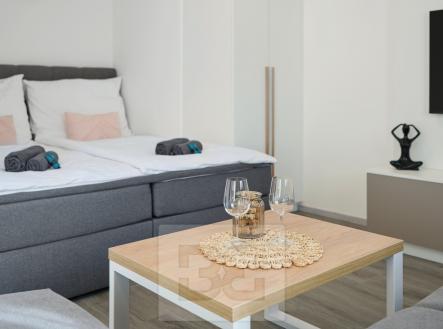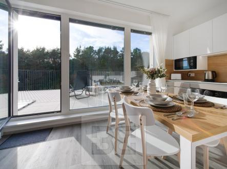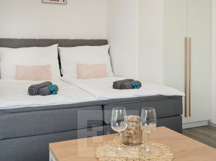 Nabízíme Vám k pronájmu atraktivní moderní byt 1+kk v novostavbě v klidné lokalitě Za Jitonou v Českém Krumlově - Latránu. Tento nádherný byt o velikosti 37 m² se nachází na 4. patře cihlového domu s terasou o velikosti 12 m² a sklepem o velikosti 3 m². V bytě najdete veškeré vybavení, které potřebujete pro pohodlný pobyt - plně vybavený kuchyňský kout, jídelní stůl se židlemi, postel, gauč, TV stěnu a dostatek úložného prostoru ve skříních. Z terasy si můžete užívat krásný výhled na okolní krajinu. K bytu patří také vyhrazené garážové stání, což je velkou výhodou v této lokalitě. Budete mít výbornou dopravní dostupnost a spoustu možností pro aktivní trávení volného času v okolí. Nechte se okouzlit tímto moderním a luxusním bytem s terasou, který Vám nabízí komfortní bydlení ve skvělé lokalitě. Pozor, velkou výhodou pro potenciální nájemce je, že byt je v profesionální správě společnosti Bohemian Estates, jenž správu pro majitele tohoto bytu vykonává. Nájemci je k dispozici kontaktní osoba, která řeší veškeré záležitosti s nájmem spojené (údržba, platby nájemného, vyúčtování, dodatky, a pod.). Nájemci je tak zajištěno bezproblémové užívání bytu s kompletním servisem.