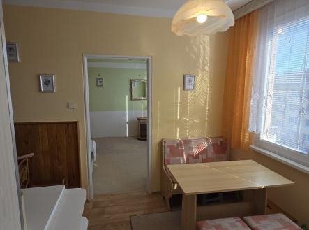 Dlouhodobý pronájem zařízeného bytu o dispozičním řešení 1+1 ve druhém patře panelového domu s výtahem. Byt je kompletně zařízený, k dispozici jsou lednice s mrazákem, automatická pračka, nábytek, televizor, postel, pohovka, nádobí a další zařízení viz fotogalerie. Bytové jádro je původní, obložené, k dispozici je vana, umyvadlo a toaleta. V obývací pokoji je balkon s výhledem na okolní krajinu. Jednotka je tvořena chodbou s úložným prostorem, dále kompletně vybavenou kuchyní s udržovanou kuchyňskou linkou a jídelnou a obývacím pokojem. Na podlahách je koberec a PVC. K dispozici je dále sklep. Dům má bezbariérový přístup. Měsíční nájemné je 11 000,- Kč + zálohy na dodávku vody a tepla a služeb 4 000,- Kč/ 2 osoby. Nájemce si dále sám hradí dodávku elektrické energie a plynu (vaření) , cca 800,- Kč/měsíc. Majitelé požadují při podpisu smlouvy složit jednu vratnou kauci a nájemné na první měsíc, dále potom jeden čistý nájem pro RK za servis. Hezký a udržovaný byt v klidné lokalitě s dostupným parkováním. V okolí je veškerá občanská vybavenost a MHD. K dispozici po dohodě. Více informací včetně prohlídek u makléře zakázky.
