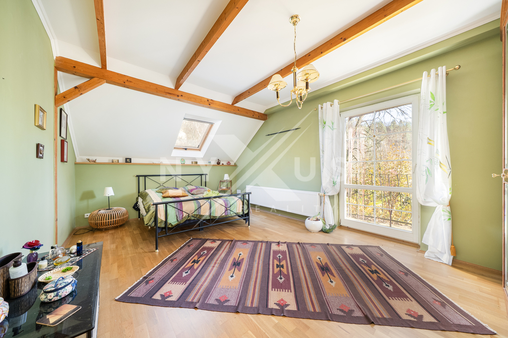 Patrový dům o dispozici 3+kk s užitnou plochou 181 m² a domem pro hosty s užitnou plochou 56 m² v Českém Šternberku. Dům poskytuje výjimečný prostor, soukromí a komfortní zázemí pro rodinné bydlení. Přízemí o velikosti 99 m² sestává z vstupní chodby, koupelny, technické místnosti a především velkým otevřeným obytným prostorem, který propojuje kuchyni, jídelnu, pracovnu a obývací pokoj s krbem. Z této části domu je přímý vstup na zasklenou terasu 9 m² s krásným výhledem do zahrady. V patře o užitné ploše 82 m² se nachází prostorná hala, koupelna s vanou a dvě útulné ložnice, z nichž každá má vlastní balkon o velikosti 3 m² a kamna na dřevo. Na pozemku o ploše 3 334 m² se nachází také zateplený dům pro hosty o užitné ploše 56 m², který je vybaven obývacím pokojem, finskou saunou, sprchou, toaletou a samostatným pokojem pro hosty. Od brány vede příjezdová cesta k domu, kde je i možnost pro parkování vozidel. Nechybí ani venkovní posezení určené pro grilování. Součástí pozemku je také bazén a vířivka, které zajišťují komfort a možnosti relaxace. Zeleň v podobě vzrostlých stromů a keřů, které poskytují přirozené zastínění i soukromí. Vytápění domu je zajištěno radiátory, krbem i kamny. Na pozemku je dále studna, čistička odpadních vod a podzemní plynový zásobník. Český Šternberk je jedna z nejmalebnějších a nejklidnějších obcí ve Středočeském kraji, známá především ikonickým hradem Český Šternberk, který se tyčí přímo nad řekou Sázavou. Okolí je vyhledávané milovníky přírody, turistiky, cykloturistiky a vodních sportů — vede tudy Posázavská stezka i řada atraktivních cyklotras. V obci najdete restaurace, menší obchody, poštu i základní občanskou vybavenost pro víkendové i trvalé bydlení. Další rozšířené služby jsou dostupné v nedaleké Sázavě či Vlašimi. Velkou výhodou je dopravní dostupnost: autem cca 35 min na okraj Prahy vlakové spojení: zastávka Český Šternberk – přímé spojení do Prahy i do Benešova pravidelné autobusové linky do okolních měst Český Šternberk nabízí ideální propojení klidu venkova, šumění Sázavy a krásné přírody s dobrou dosažitelností Prahy. Další informace: Energetická náročnost budovy: PENB nebyl dodán, proto prozatím uvádíme třídu G. Nemovitost je v osobním vlastnictví a lze ji tedy financovat hypotečním úvěrem, který Vám zdarma pomůžeme vyřídit za nejvýhodnějších podmínek na trhu. Zaujala vás tato nabídka? Neváhejte mě kontaktovat pro více informací nebo si rovnou domluvit termín prohlídky. Těším se na setkání s vámi!