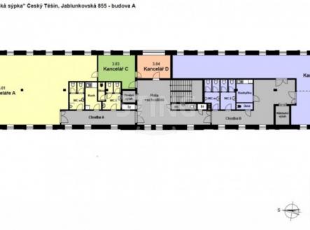 Nabízíme k pronájmu obchodní prostory s výtahem, ve zcela zrekonstruovaném objektu "Těšínské sýpky-BUDOVA A“, vhodné jako prodejny, restaurační zařízení, sídlo firmy, atd. na ulici Jablunkovská v Českém Těšíně, s parkováním v objektu areálu. Prostory jsou po kompletní rekonstrukci a plně vyhovují současným požadavkům na funkční vybavení, energetické úspory, komfort vnitřního prostředí staveb či požární bezpečnost. Jedná se o prostory při sjezdu z hlavní ulice Jablunkovská, v blízkosti hranice s PL a nájezdem na D48 s návazností na I/48 (E462) Polsko. Prostory s výtahem, vysokorychlostním internetem, s vlastním sociálním zázemím, s možností klimatizace v pronajatých prostorách. 1.NP ( přízemí) o výměře 491 m2, ideální pro obchody ( 6 obchodních prostor o výměře 75-84 m2), s možností propojení. K pronájmu jsou dále i prostory ve 2.NP-3.NP ( cena pronájmu 208,-Kč/měsíc). 2. NP ( 1 patro) o výměře 451 m2, ideální jako kancelářské či skladové prostory, lékařské ordinace (2 prostory o výměře 204 + 207 m2) s možností rozdělení na poloviční plochu. 3. NP (2 patro) o výměře 451 m2, ideální jako kancelářské či skladové prostory, lékařské ordinace (2 prostory o výměře 204 + 207 m2) s možností rozdělení na poloviční plochu. Výborná lokalita se skvělou dostupností. Výhodou i možnost pronájmu bytové jednotky ve 4.NP (3 patro): 4 bytové jednotky ( cena na vyžádání).