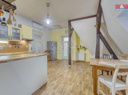 Nabízíme k prodeji výjimečný byt 3+1 o užitné ploše 118 m² s vlastním půdním prostorem 114,88 m², situovaný v posledním patře městské vily přímo nad přehradou Skalka v Chebu. Byt prošel kompletní rekonstrukcí, disponuje prostorným obývacím pokojem, velkorysou kuchyní s jídelnou, dvěma ložnicemi, koupelnou a centrální chodbou. Půda, přístupná přímo z bytu, nabízí možnost vestavby mezonetu či vytvoření druhé bytové jednotky. Vytápění zajišťuje tepelné čerpadlo, krbová kamna a elektrokotel. Orientace na jih poskytuje nádherné výhledy na přehradu i město. K bytu náleží užívání zahrady o výměře cca 490 m², parkování je možné u domu. Nemovitost se nachází v klidné a vyhledávané lokalitě s výbornou dostupností. Vhodné pro náročné klienty hledající prostor, soukromí a potenciál investice. Doporučujeme osobní prohlídku – tento byt je skutečně jedinečný.