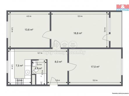 Prodej bytu 3+1, 67 m², Cheb, ul. 17. listopadu