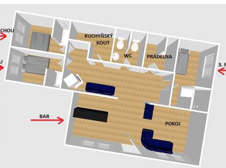 Nabízíme Vám k dlouhodobému pronájmu dům o celkové ploše 170 m2, který se nachází na pozemku 404 m2 v lukrativní části města Cheb. Jde o bývalý noční klub/bar. Dispozice domu je následující: v přední části domu jsou dvě velké výlohy dále pak bar a posezení, v zadní části se nachází tři samostatné pokoje se sprchou, dále pak společné WC, prádelna s další toaletou a kuchyňka. Dům je možné využít k různému podnikání dle vlastních představ. Pozemek je celý oplocený, součástí je i terasa a dvůr na zaparkování. Topení je elektrické nebo v kachlových kamnech, voda a kanalizace veřejná.. Poplatky za energie hradí nájemce. Dům má novou střechu. Měsíční nájemné je 35 000 Kč, vratná kauce 35 000 kč, jednorázová provize RK 35 000 Kč. Neváhejte a sjednejte si prohlídku.