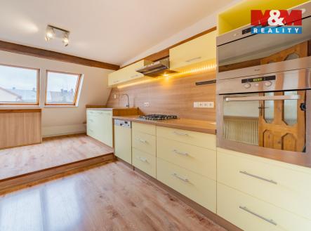 Prodej podkrovního bytu 3+1 ve 4.patře cihlového domu nedaleko centra města. Byt má výměru 140m2. Velmi prostorné místnosti, koupelna s vanou a sprchovým koutem. Vytápění a ohřev vody přes plynový kotel. Velmi nízké náklady na bydlení, fond oprav cca. 1.700,- Kč. Kuchyňská linka včetně vestavěných spotřebičů. Součástí prodeje jsou i vestavěné skříně v předsíni. K bytu patří sklep o výměře 37m2. Více informací u makléře.