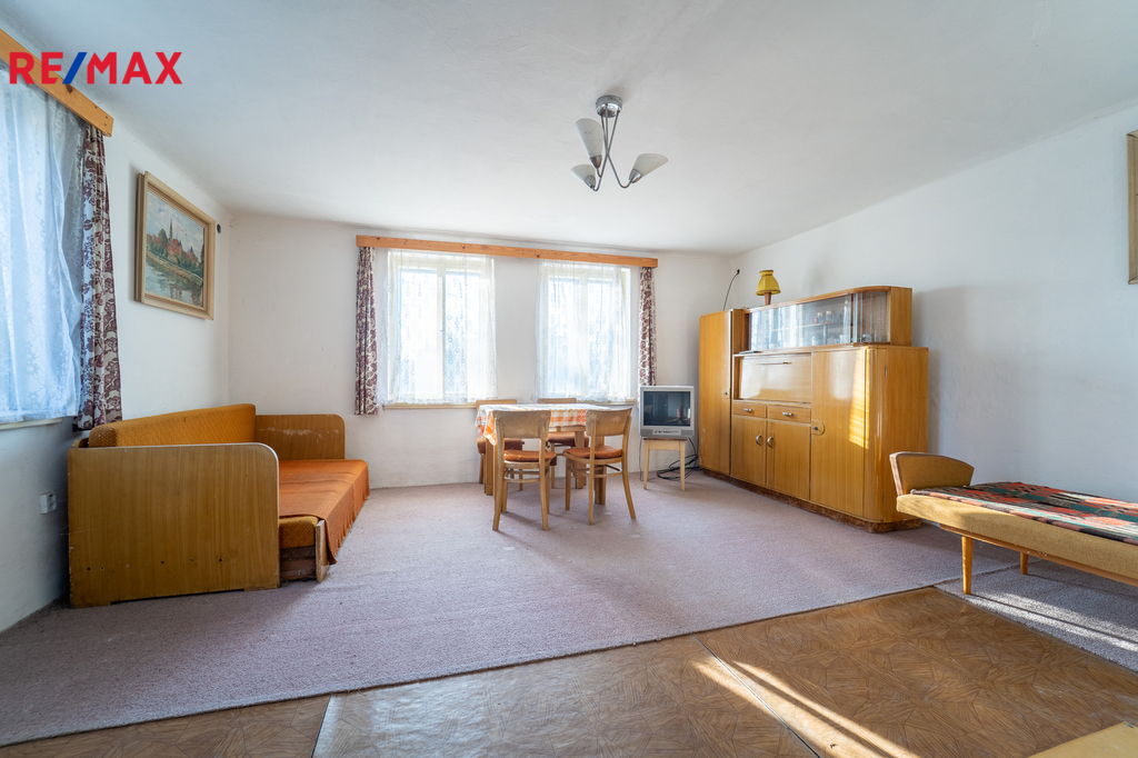 Dovoluji si Vám nabídnout prodej rodinného domu s rozlehlým pozemkem v Drahu (části obce Chleby), v okrese Nymburk. Rovinatý pozemek je částečně oplocen a má celkovou rozlohu 4446 m2. Samostatně stojící dům s kůlnami je z cihlového zdiva a má sedlovou střechu s pálenými taškami. Objekt je převážně v původním, avšak udržovaném stavu . Podlahy v obytné části tvoří dlažba a beton s PVC. Dispozice: předsíň, kuchyně, koupelna s vanou a toaletou, komora a dva pokoje. Na obytnou část navazují kůlny a garáž, kde lze vybudovat další obytné místnosti. Dům je částečně podsklepen. K vytápění slouží kamna na tuhá paliva v jedné místnosti. Ohřev vody zajišťuje elektrický bojler. Dům je napojen na veřejný vodovod a tlakovou kanalizaci. Na pozemku je též k dispozici kopaná studna. Pozemek tvoří několik samostatných parcel a má veliký potenciál využití. Nemovitost se nachází na okraji obce. Obec Chleby se nachází necelých 8 km od okresního města Nymburk, kde je veškerá občanská vybavenost, včetně všestranného využití volného času. Přímo v obci je vyhlášená zoologická zahrada ZOO Chleby, dětské hřiště, fotbalové hřiště, obchod s potravinami a další. Nemovitost lze financovat hypotečním úvěrem, který Vám rádi a výhodně pomůžeme vyřídit. V případě zájmu o další informace, či prohlídku mne kontaktujte.