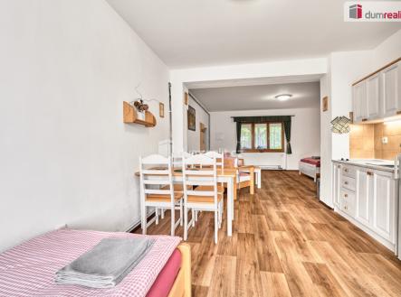 Prodej apartmánového domu s wellness a možností bydlení – Chlum u Třeboně Nabízíme k prodeji kompletně vybavený a zavedený apartmánový dům Mateřídouška, který se nachází v oblíbené rekreační lokalitě Chlum u Třeboně, pouhých 200 metrů od nechovného rybníka Hejtman. Objekt je plně funkční, ve výborném technickém stavu a připravený k okamžitému provozu. Dům nabízí pět samostatných apartmánů s celkovou kapacitou 27 lůžek, společenskou místnost s krbem, herní zónu, wellness zázemí se saunou, relaxační místností a venkovním bazénem se slanou vodou. Součástí objektu je také samostatná bytová jednotka, která umožňuje vlastní komfortní bydlení přímo na místě při současném provozování penzionu. Na pozemku se nachází okrasná zahrada, pergola, gril, dětské hřiště a osm parkovacích míst. Objekt je napojen na elektřinu, studnu (s možností připojení na obecní vodovod), kanalizaci a plyn je přiveden na hranici pozemku. K vytápění slouží elektrokotel a tepelné čerpadlo. V domě jsou tři bojlery (750 l, 120 l, 100 l). Energetickou soběstačnost podporuje fotovoltaická elektrárna, díky které se roční náklady na elektřinu pohybují kolem 20–25 tisíc korun. Velkou výhodou je možnost rozšíření – půdní prostor je připraven pro vybudování dalších apartmánů, čímž lze výrazně navýšit kapacitu a výnos. Současně je možné dokoupit sousední apartmánový dům Trefa, který nabízí tři další apartmány, zahradu a nízké provozní náklady. Spojením obou nemovitostí lze vytvořit větší ubytovací komplex s vysokým investičním potenciálem. Nemovitost se nachází v klidné a vyhledávané lokalitě s výbornou dostupností k rekreačním, kulturním i přírodním cílům. V docházkové vzdálenosti je rybník Hejtman s pláží a toboganem, historický zámek d’Este a v dosahu několika minut autem také lázeňské město Třeboň. Pro více informací a sjednání prohlídky nás neváhejte kontaktovat. Reality Škutovi Ev. číslo: 651546.