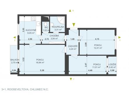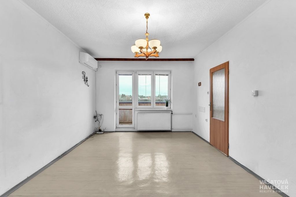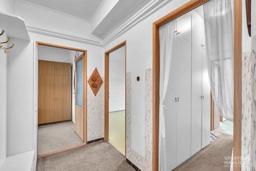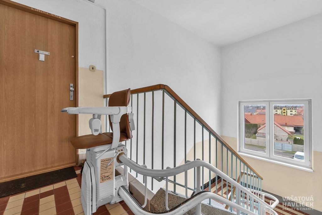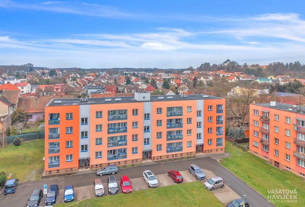 Nabízíme Vám ke koupi příjemný a světlý byt o dispozici 3+1 s celkovou výměrou 74 m² (včetně balkonu, lodžie a sklepní kóje), který se nachází v klidné části města Chlumce nad Cidlinou, v ulici Rooseveltova. Byt je umístěný ve 3. patře cihlového domu bez výtahu, kde je absence výtahu vyřešena zabudovanou schodišťovou sedačkou, která zajišťuje pohodlnější přístup. Součástí je zasklený balkon (2,7 m²) a lodžie (2,4 m²). Byt je v osobním vlastnictví s orientací na dvě světové strany – dva pokoje s lodžií směřují na východ, obývací pokoj s kuchyní a s balkonem na západ. V letech 2016 až 2020 prošel byt částečnou rekonstrukcí, při níž došlo k výměně oken, části rozvodů elektřiny, vody a odpadů, proběhla renovace koupelny, toalety i kuchyně a zasklení balkonu s lodžií. Dispozice: vstupní chodba, dva neprůchozí pokoje, obývací pokoj, kuchyň, koupelna se sprchovým koutem, samostatná toaleta, chodba, balkon a lodžie. Na podlahách je převážně linoleum, v jednom z pokojů a na chodbách je položen koberec, v koupelně s toaletou dlažba. Vytápění i ohřev vody zajišťuje plynový kotel. Instalovaná klimatizace v obývacím pokoji. V bytě zůstává kuchyňská linka s kombinovaným sporákem, digestoř, vestavěná skříň, koupelnový nábytek a pračka. Po dohodě může být součástí i další vybavení – šatní skříň s nábytkem a pohovkou v jednom z pokojů. K bytu náleží větší sklepní kóje o přibližné výměře 5 m². K dispozici jsou také společné prostory jako kočárkárna a kolárna. V domě je zavedena společná TV anténa s centrálním rozvodem internetu. Bytový dům prošel celkovou revitalizací – zateplení stěn se střechou, výměna stoupacích rozvodů vody a odpadů, instalace nových vstupních dveří a oken, zasklení balkonů s lodžiemi. Podle dostupných informací nejsou plánovány žádné větší rekonstrukce. Bezproblémové parkování přímo před domem nebo v jeho blízkém okolí. Lokalita nabízí velmi dobrou občanskou vybavenost – v docházkové vzdálenosti najdete obchody, restaurace, poštu, lékaře i základní a mateřskou školu. Chlumec nad Cidlinou má rovněž dobré dopravní spojení – autobus, vlak i pohodlný dojezd autem s blízkým nájezdem na dálnici D11 (Praha – Hradec Králové – Pardubice). Byt je vhodný pro ty, kteří hledají klidné a pohodlné bydlení s možností se hned nastěhovat, ale také pro investory, kteří hledají nemovitost s potenciálem pro pronájem. K nastěhování je byt připraven od 26. února 2026, případně po dohodě i dříve. V případě zájmu Vám rádi pomůžeme zajistit vhodné financování podle Vašich možností a potřeb. Těšíme se na setkání při prohlídce.