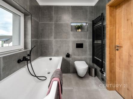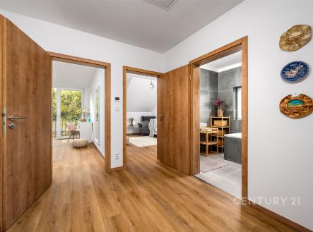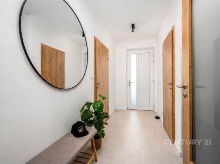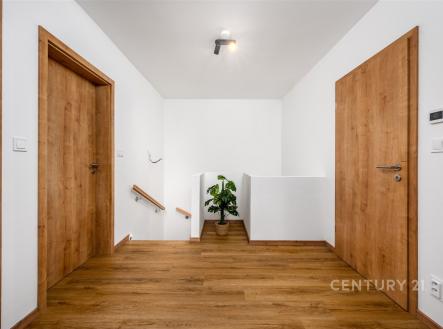 Hledáte nový domov v klidném a přírodním prostředí nedaleko Prahy? Představujeme vám zcela novou nemovitost, dům v obci Komorní Hrádek u Chocerad, která se pyšní nejen dobrou dostupností, ale také jedinečným charakterem prostředí. Nabízíme k prodeji rodinný dům s dispozicí 5+kk s garáží, který byl zkolaudován v listopadu 2024. Celková plocha pozemku činí 591 m², z toho zastavěná plocha domu je 81 m² a užitná plocha domu je 115 m². Dům disponuje dvěma nadzemními podlažími. V přízemí domu je velký obývací pokoj s kuchyňským koutem s designovou linkou od společnosti Oresi, včetně všech vestavěných spotřebičů. Díky velkým oknům s izolačním trojsklem je obývací pokoj dostatečně světlý, příjemný je také vstup přímo na zahradu, nebo budoucí terasu s posezením. Garáž je v tuto chvíli využívána jako sklad a zázemí domu. Koupelna v přízemí je obložená velkoformátovým obkladem s designovými prvky, je zde sprchový kout společně s toaletou, elektrický topný žebřík a ve sníženém prostoru pod betonovým schodištěm je umístěný elektrický bojler na teplou vodu. Patro domu disponuje čtyřmi samostatnými pokoji s využitím dle Vašeho uvážení, společnou halou a dále druhou koupelnou s vanou, toaletou a topným elektrickým žebříkem. Po skládacích schodech se dostanete z haly do půdního prostoru, který se dá využít po úpravě podlahy k odkládání sezóních věcí. Dům je postaven z kvalitních cihlových materiálů, zateplený a energický štítek B zaručuje velmi dobré tepelné vlastnosti – roční energetická náročnost budovy je ohodnocena na 86 kWh/m². Vytápění domu je řešeno pomocí podlahového elektrického vytápění, což přispívá k optimální distribuci tepla v interiéru. Pro ohřev vody je v domě nainstalován elektrický boiler, který je natápěn šesti fotovoltaickými panely umístěnými na střeše RD. Po úpravě lze panely využívat i pro dodávku elektřiny do podlahového topení. Dále je v obývacím pokoji komínové těleso pro napojení krbu, nebo krbových kamen, které zútulní Váš nový domov a dále je provedena příprava pro osazení nástěnné klimatizační jednotky v obývacím pokoji a ložnici v 2NP. Dům je napojen na obecní vodovod, kanalizaci, plyn není zaveden. Pro internetové připojení je zaveden optický kabel. Dům se pyšní otevřeným výhledem díky umístění v horní části tohoto malého Developerského projektu a dostatkem soukromí. Zahrada která přináleží k tomuto domu čeká na realizaci dle Vašich představ. Tento objekt je tedy ideální volbou pro ty, kdo hledají nový domov v souladu s moderními standardy bydlení, s otevřeným výhledem a v příjemném prostředí okrajové části obce Chocerady, která je skvěle dostupná jak autem, tak veřejnou dopravou z blízké Prahy. V obci Chocerady je základní škola, mateřská školka, množství zájmových kroužků, fotbalové hřiště, potraviny, hospody. V okolí jsou krásné terény pro cyklotoulky, blízkost řeky Sázavy vybízí k vodním sportům, koupání a rybolovu. Jestli Vás zaujala tato nabídka tak si domluvte prohlídku.