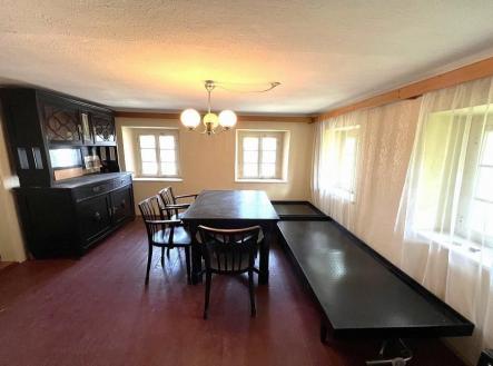 Samostatně stojící objekt vesnického domu - chalupy s hospodářskou přístavbou a navazujícími pozemky - zahradou o celkové výměře 856 m2 v klidné okrajové části obce Chodov navazující na přírodní lokalitu CHKO Český Les. Přízemní, částečně podsklepený objekt historické chalupy - původní zemědělské usedlosti, zděné konstrukce o dispozici obytných prostor 3KK s příslušenstvím v přízemní části objektu, 2x sklepními prostorami a volnými podkrovními prostorami s možností realizace obytné vestavby. Objekt je provozně vybaven a částečně zařízen jako původní venkovské stavení se zachovalými historickými stavebními prvky a původní konstrukcí. V průběhu let 1970 - 80 byly vnitřní prostory objektu částečně modernizovány, adaptovány do současné podoby a následně užívány k přechodnému rekreačnímu bydlení. Chalupa nyní již delší dobu není užívána ke svému účelu, sezónně udržována, připravena k okamžitému předání, užívání a zahájení modernizace a rekonstrukce dle představ nového vlastníka. Na objekt navazují vlastní pozemky - zahrada s částečným oplocením, původními porosty, vzrostlými ovocnými a náletovými dřevinami s venkovní klidovou a užitkovou plochou se zpevněnými venkovními úpravami a tarasy s vedlejší stavbou původního parkovacího přístřešku s okolní zástavbu vesnických rodinných domů. Nemovitosti jsou situovány ve svažitém terénu se zbudovanými terénními tarasy s orientací pozemků na jihozápad, navazujících na příjezdovou komunikaci, dostupných 2x z veřejné zpevněné komunikace s vedením kompletních inženýrských sítí. Nabízené nemovitosti jsou vhodné pro zájemce, kteří hledají stylovou venkovskou chalupu k provedení rekonstrukce dle vlastních představ, s potenciálem rozšíření obytných prostor, možností následného užívání k rekreačnímu i trvalému bydlení v klidné přírodní lokalitě v podhůří CHKO Český Les v chodské obci v blízkosti státních hranic CZ/SRN s dostupnost základních služeb a infrastruktury, cca 6 km od okresního města Domažlice s kompletní vybaveností. Předností nabízených nemovitostí je historický charakter, velikost a dispozice vnitřních prostor objektu vesnického stavení s potenciálem možného rozšíření obytných prostor, velikost pozemku, lokace v klidné okrajové části obce v přírodní lokalitě CHKO Český Les a možnost napojení na kompletní inženýrské sítě. ENB "G" (průkaz nezpracován). Dispozice: sklep - vstup, 2x provozní skladovací prostor (bývalá maštal se sklepem). Přízemí - vstup, chodba, obytná místnost s krbovými kamny, místnost s kuchyňským koutem a jídelnou, prostor původní ložnice, sprchový kout, původní pec, ext. skladovací prostor, suché WC, podkroví - schodiště, volný půdní prostor k případné obytné vestavbě. Přístup z veřejné zpevněné komunikace s 2x vjezdem na pozemek, elektřina 220/380, napojeno na veřejný vodovod, odkanalizováno do jímky s možností okamžitého napojení na veřejnou splaškovou kanalizaci, napojeno na rozvod plynu, v dosahu telekomunikačních rozvodů. Vytápění : lokální na tuhá paliva (krbová kamna).