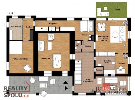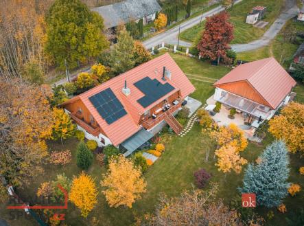 Na prodej soubor dvou budov ( po celkové rekonstrukci ) nacházející se na rozsáhlém, udržovaném pozemku se vzrostlými dřevinami, s řadou nadstandardních prvků pro komfortní bydlení i relaxaci, nacházející se v obci Chodská Lhota, osada Štefle. Vytápění zajišťuje fotovoltaická elektrárna a tepelné čerpadlo, díky čemuž jsou velmi nízké náklady na provoz. Z hlediska energetické náročnosti budovy je zařazena do třídy A, což je nejlepší možná varianta. Odpady jsou likvidovány v samostatném septiku, nicméně v příštím roce je plánovaná výstavba veřejné kanalizace. Zdroj vody je veřejný vodovod, případně na pozemku umístěná studna. Rodinný dům, disponující dvěmi samostatnými bytovými jednotkami. V přízemí domu je prostorná vstupní hala, na kterou navazuje zimní zahrada, byt s dispozicí 3+kk, ke kterému patří i relaxační pokoj vybavený saunou a soláriem, a odpočinková místnost s kulečníkovým stolem, mixážním pultem a šipkami. V patře se nachází prostorný obývací pokoj s luxusním kuchyňským koutem a krbem. Dále 5 ložnic, koupelna, Wc. Z obývacího pokoje se vyjde na prostornou terasu se schody mířícími do zahrady. Zde se nachází zahradní dům s plně vybavenou kuchyní a relaxační místností, ideální pro společenské setkání či rodinné oslavy. Obec Chodská Lhota leží v malebné krajině Pošumaví, přibližně 12 km jihozápadně od Domažlic a jen pár kilometrů od hranice s Německem. Patří mezi tradiční chodské vesnice s bohatou historií, čistým životním prostředím a klidnou atmosférou typickou pro západní Čechy. Je zde dostupná základní občanská vybavenost – obecní úřad, obchod, restaurace, kulturní dům, sportoviště a autobusové spojení do okolních měst (Kdyně, Domažlice). Rozšířená infrastruktura, školy a zdravotní služby se nacházejí v nedaleké Kdyni (cca 5 min jízdy) nebo Domažlicích (cca 15 min). Tato nemovitost představuje jedinečnou kombinaci prostorného bydlení, pohodlí a soukromí. Díky dvěma bytovým jednotkám, wellness zóně, zahradnímu zázemí a atraktivní lokalitě je ideální pro náročné klienty hledající klidný venkovský život s moderním komfortem. Jednoduchým řešením by šla upravit např. na penzion. Nemovitost se nabízí k prodeji kompletně vybavená. Tzn. koupit a okamžitě užívat.