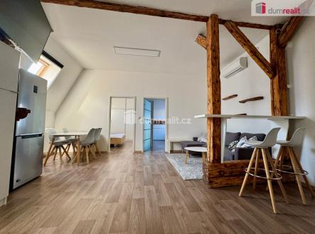 Exkluzivní pronájem světlého podkrovního bytu s dispozicí 3+kk, který se nachází v domě v samotném centru města. Byt je moderně a vkusně zařízený a nabízí komfortní bydlení. Vytápění je řešeno plynem. V obývacím pokoji je k dispozici klimatizace. Koupelna je vybavena sprchovým koutem a závěsnou toaletou, dále úložným prostorem a pračkou. Součástí bytu je kuchyňská linka s vestavěnými spotřebiči. Nábytek a vybavení zobrazené na fotografiích jsou součástí pronájmu. Stanovené nájemné je uvedeno bez energií a služeb. Poplatky za užívání bytu a energií ( voda, plyn, elektřina ) činí 4.500,- kč měsíčně. Nutnost složení kauce ve výši tří nájmů, jednoho nájemného + poplatek RK. Více informací na dotaz u makléře nabídky. Ev. číslo: 653411.