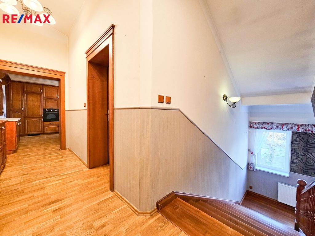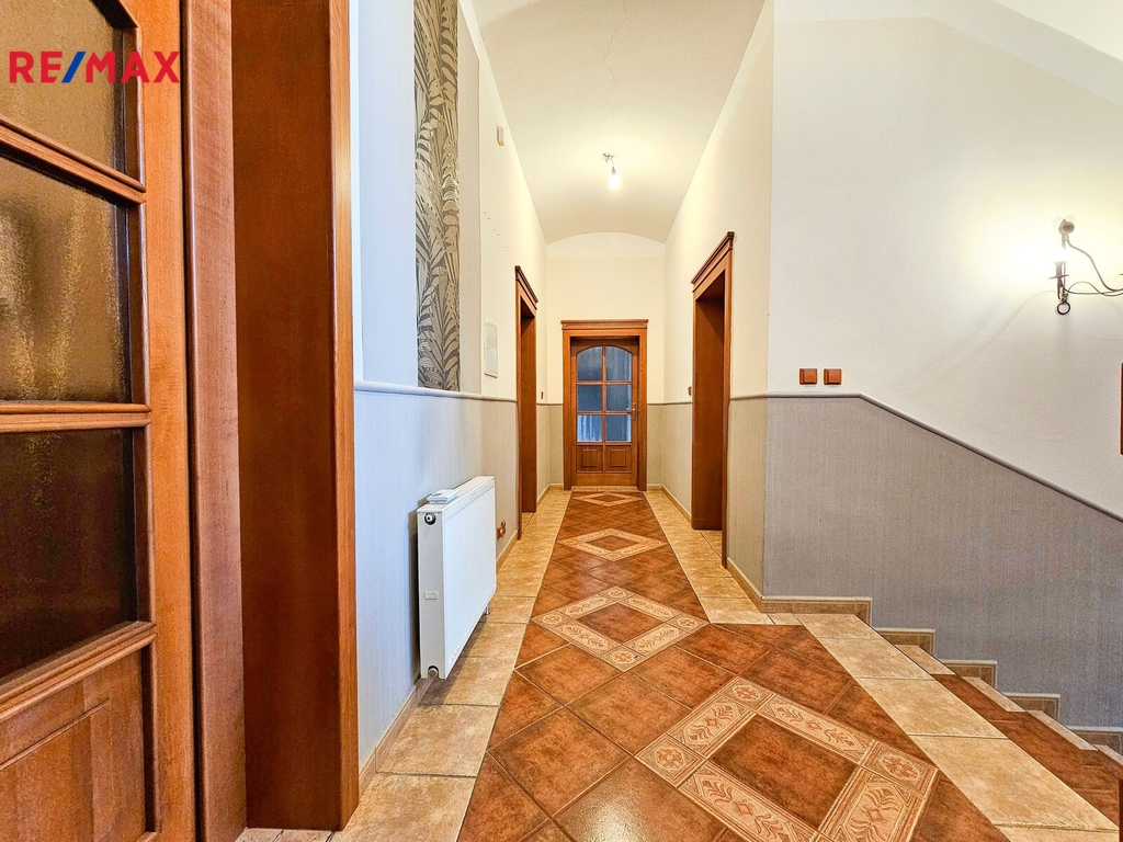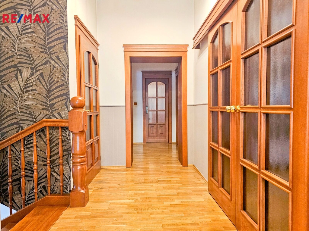Dům s velkou zahradou ve vyhledávané lokalitě, na dosah centra města. Využitelný pro větší rodinu, vícegenerační bydlení nebo kombinaci bydlení a kanceláří pro firmu. To vše vám nabízí dům v Husově ulici, který vám chci představit. Celý dům si můžete projít ve virtuální prohlídce, dovolte tedy jen krátký popis. Přístup do domu je možný buď z ulice, nebo přímo z garáže, kam zaparkujete i větší auto. Vjezd do garáže je jasně vyznačen a nemáte tak problém s parkováním přes den ani večer. V přízemí budete mít k dispozici čtyři prostorné pokoje a koupelnu s toaletou. Po doplnění o kuchyň získáte prostorný byt 3+1, propojený s krytou terasou na zahradě. Schodiště do patra je dominantou centrální části domu, má původní dřevěné zábradlí a schodnice z masivu. V prvním patře vás širokými posuvnými dveřmi přivítá velkoryse řešený obývací pokoj. Zabírá téměř celou šíři domu a je přirozeným centrem rodinného života, kde večerní posezení u krbu dokáže navodit velmi příjemnou atmosféru. S obývacím pokojem sousedí prostorná kuchyně, kam se ke stolu vejde i početná rodina. Patro doplňuje dětský pokoj a ložnice, nechybí další velká koupelna s toaletou, sprchovým koutem a vanou. Pokud budete mít potřebu dům ještě rozšířit, je k dispozici celá půda pro vybudování dalšího bytu. Dům je také z velké části podsklepen – velký a suchý sklep nabízí množství úložných prostor. Samostatnou kapitolou je zahrada. Situovaná do vnitrobloku, odstíněná od okolního ruchu. Je přístupná buď přímo z hlavní chodby domu, nebo přes terasu. Díky orientaci na jihovýchod máte dostatek slunce pro zahrádkaření (samozřejmě nechybí skleník), před letními odpoledními vedry vás ale již ochrání posezení ve stínu domu. Samozřejmě nechybí prostor pro bazén a přístřešek na grilování. Velkou výhodou je přístupnost zahrady zezadu – vše potřebné si dovezete, můžete zde zaparkovat auto nebo vozík. Je toho hodně, co vám dům může nabídnout. Zavolejte, přijďte na prohlídku a rád vás provedu. V případě zájmu máme k dispozici i stavební dokumentaci pro seznámení s technickými detaily rekonstrukce. Tento dům se vrací do prodeje za speciálních podmínek, které vám rád sdělím osobně. Těším se na setkání.