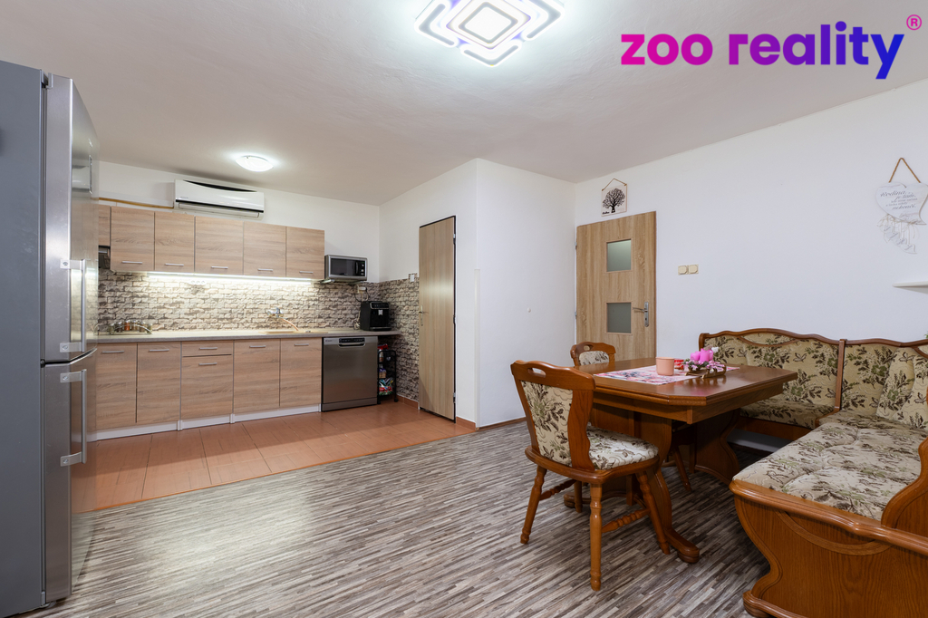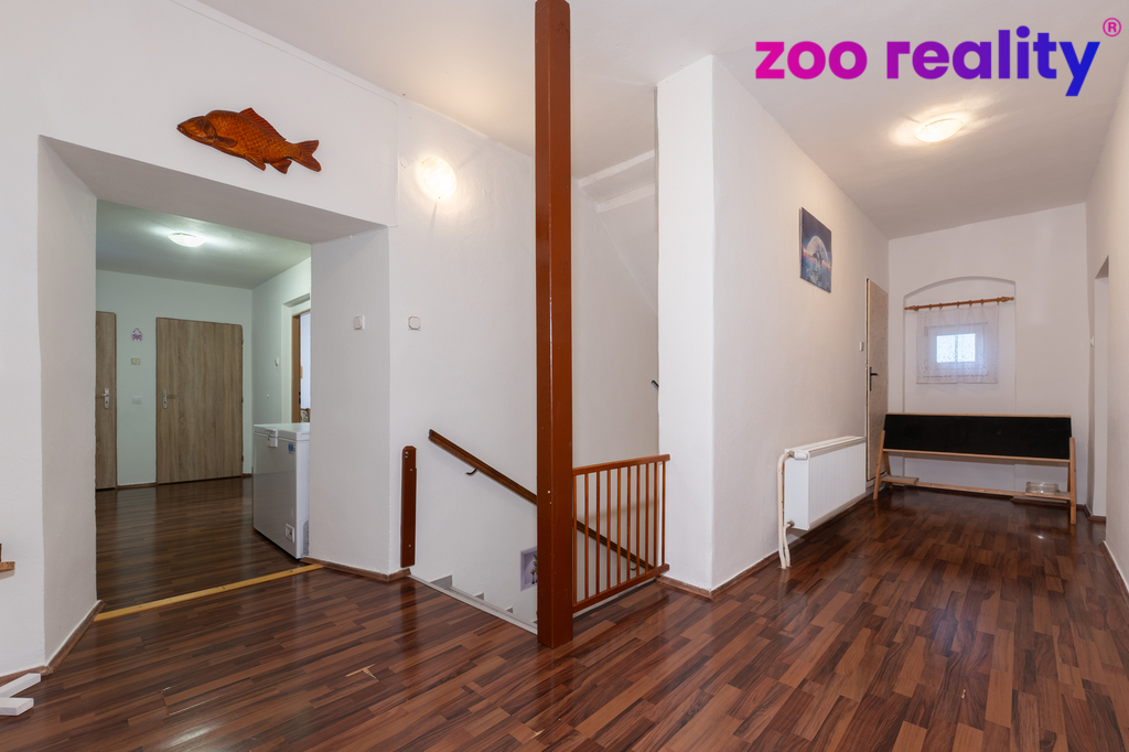 Dobrý den, k prodeji nabízím prostorný rodinný dům v obci Velký Újezd, která spadá pod obec Chorušice. Lokalita se nachází přibližně 10 km severovýchodně od Mělníka a nabízí klidné bydlení na venkově s výbornou dostupností služeb. V obci žije zhruba 250 obyvatel, což zajišťuje příjemnou atmosféru a dostatek soukromí. Veškerá občanská vybavenost – obchody, škola, školka i další služby – se nachází v nedalekém Mšeně, vzdáleném necelé 4 km. Právě Mšeno je považováno za vstupní bránu do chráněné krajinné oblasti Kokořínsko, která nabízí nespočet možností výletů, turistiky i aktivního odpočinku doslova za rohem. Dům a dispozice Dům o celkové užitné ploše přes 250 m² je rozdělen do dvou podlaží a nabízí velmi variabilní využití – ideální pro vícegenerační bydlení, velkou rodinu nebo kombinaci bydlení a podnikání. Přízemí: Garáž, dílna, kotelna, koupelna, kuchyně a velký obyvatelný pokoj, který lze využít jako samostatné zázemí pro část rodiny, hosty nebo pro různé volnočasové či pracovní aktivity. První patro: Bytová jednotka o dispozici 4+kk. Po vstupu do patra je dům velmi chytře rozdělen – vlevo se nachází pokoje, vpravo prostorný obývací pokoj propojený s kuchyní. Toto uspořádání zajišťuje klid a soukromí pro všechny členy domácnosti. V patře je dále hlavní koupelna a samostatná toaleta. Součástí domu je také klenutý sklep a prostorná půda, která nabízí další potenciál k využití. Exteriér Před domem se nachází dlážděný dvůr s pojezdovou bránou, další garáž, malá dílna a kryté posezení s venkovním grilem. Nad domem je příjemná zahrádka, ideální pro dětské hry, relaxaci nebo posezení na čerstvém vzduchu. Celková plocha pozemku činí 485 m². Technické informace: - voda: vodovodní řád - odpad: jímka o objemu 18 m³ - vytápění a ohřev vody: kotel na tuhá paliva Přestože se jedná o starší dům, interiér působí velmi příjemně, čistě a suchým dojmem. Dům je přizpůsoben rodinnému životu, bez pocitu chladu od podlah či jiných běžných neduhů starších staveb. Atmosféra domu je klidná a přívětivá – ideální pro rodinu s dětmi. Pokud hledáte prostorné bydlení v klidné lokalitě s výjimečným okolím, tento dům rozhodně stojí za prohlídku. Zavolejte a rád Vám dům osobně představím. S pozdravem Jiří Tschiharsch