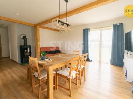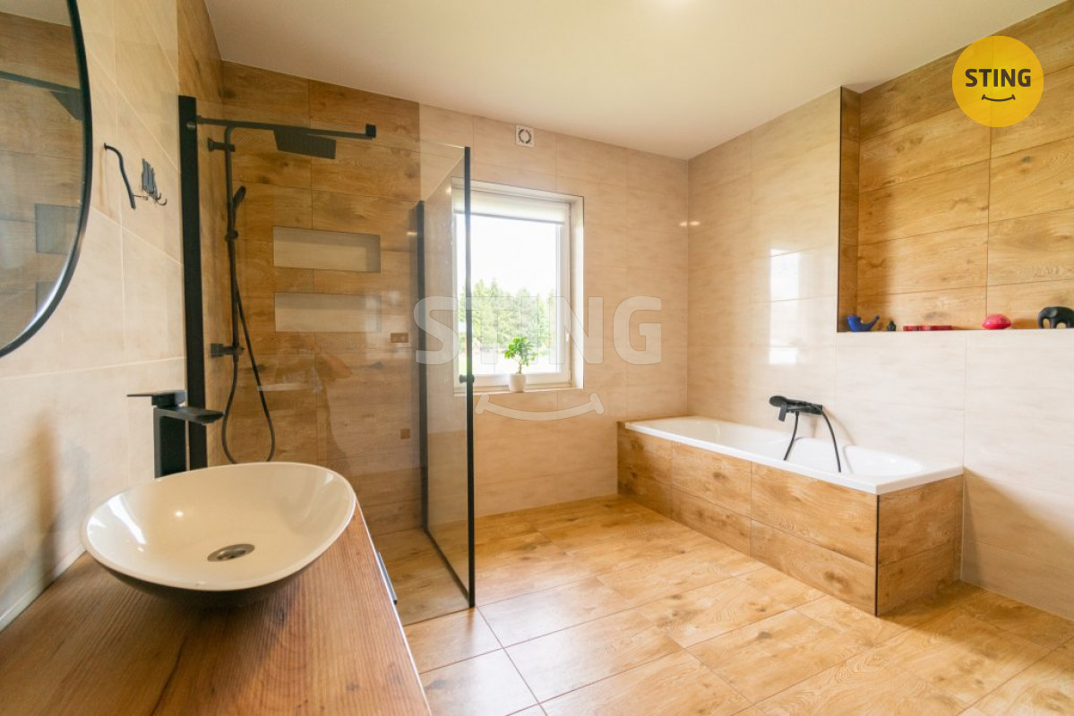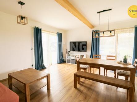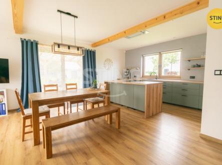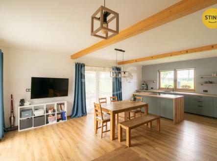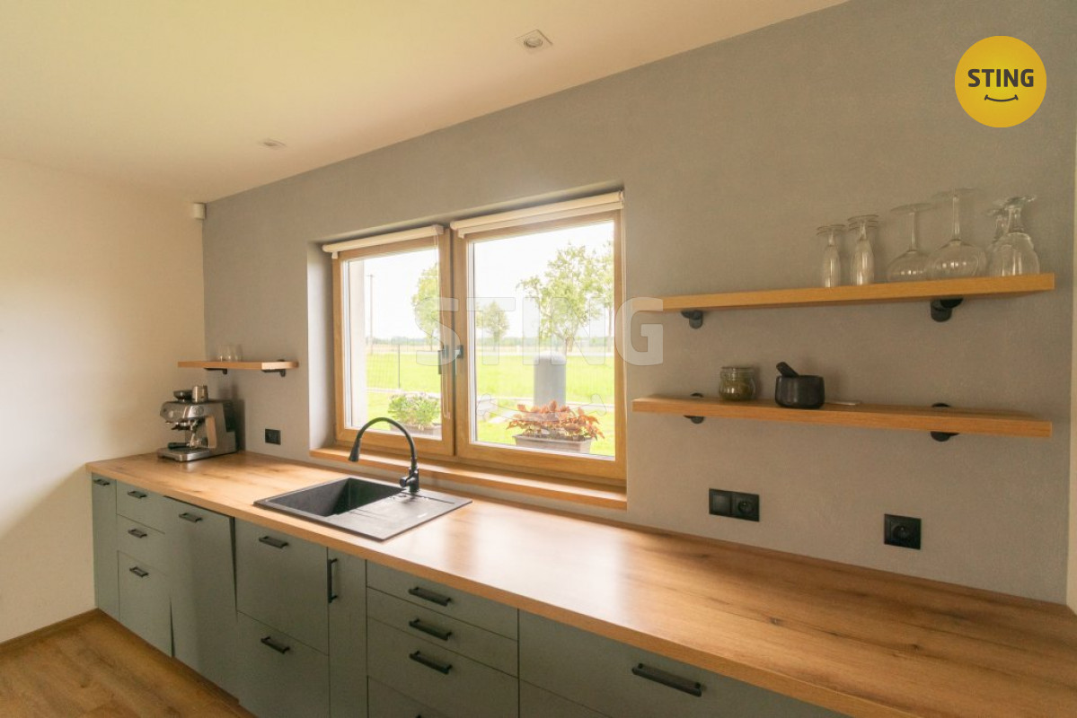 Nabízíme Vám ke koupi novostavbu rodinného domu 4+kk, která se nachází ve vyhledávané lokalitě v obci Chotěbuz. Zastavěná plocha nemovitosti činí 142 m2, nemovitost je jednopodlažní. Za vstupem do domu se nachází předsíň, ze které se dostaneme chodbou do obývacího pokoje s jídelnou a kuchyní. Z obývacího pokoje se vstupuje na prostornou terasu orientovanou jižním a západním směrem. V domě jsou dále tři neprůchozí pokoje, které je možné využít jako ložnici, dětské pokoje, případně jako pracovnu. V moderní a velmi prostorné koupelně se nachází vana a sprchový kout. Dům dále disponuje technickou místností a spižírnou. Vytápění domu je řešeno tepelným čerpadlem, v domě je podlahové topení, v obývacím pokoji jsou krbová kamna. Pitná voda z obecního vodovodního řadu, ohřev vody zajišťuje rovněž tepelné čerpadlo. Odpad - ČOV, střešní krytina - betonová taška. V celém domě jsou plastová okna s trojskly. Jedná se o dřevostavbu. K nemovitosti náleží oplocená zahrada o výměře 1058 m2. Dům se nachází v klidné části obce Chotěbuz, kde nalezneme veškerou občanskou vybavenost (škola, školka, obchod, dětské hřiště, pošta, autobus). Nemovitost skýtá možnost bydlení stranou městského ruchu s dostatkem zeleně v bezprostředním okolí, avšak zároveň s výbornou dostupností do okolních měst. Nemovitost nabízí výbornou dostupnost do Českého Těšína, Karviné či Frýdku-Místku, jelikož se nachází v dosahu přivaděče na dálnici D48. Velmi pěkné, klidné a moderní bydlení. Pro více informací a prohlídku domu mne kontaktujte.