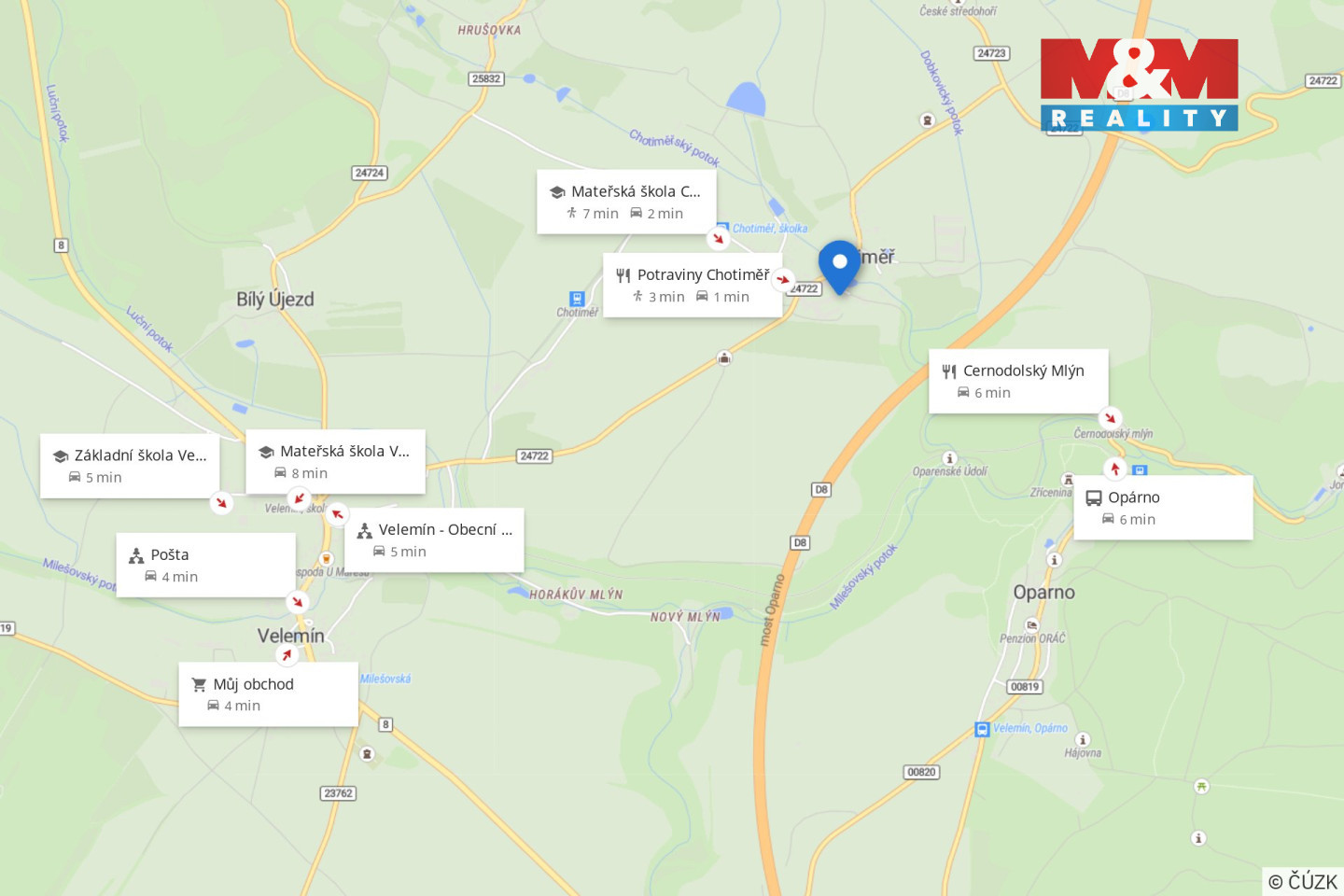 Malebná obec Chotiměř v sobě vskutku ukrývá poklady. Nejen vzácný dar klidu, ticha, relaxu, ale i co se objektů v této lokalitě týče. Další překrásný domek zde mám pro vás v nabídce. Nádherně a vkusně zařízený rodinný dům s pergolou, vířivkou zajistí naprostý komfort. Zde najdete vše pro váš spokojený život nejen po náročném dni. Velkou roli zde hraje kámen, který zdobí nejen dům, ale i okolí. Samozřejmě je jen na vás, zda zde místo kamení uděláte wimbledonský trávník či zeleninovou, bylinkovou zahrádku a zda z úžasného podkroví uděláte relaxační zónu nebo pokojík pro děti a ložnici. Nabídka osloví především příznivce klidného venkovského života. Přitom ani do města to rozhodně nebudete mít daleko, stejně jako třeba napojit se na dálnici do Prahy. Rozhodně zde naleznete i spoustu příležitostí k výletům, procházkám, protože přírodu máte všude okolo vás, třeba Opárenské údolí nebo Černodolský mlýn. Kousek od bydlení je též i mateřská škola či obchod s potravinami. Potřebujete vědět víc?
