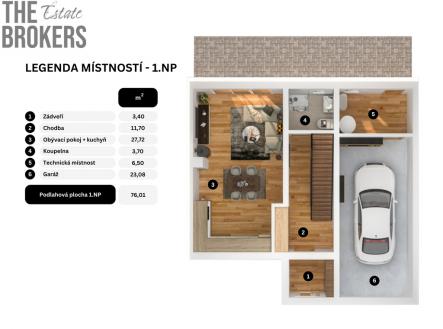 Nabízíme vám exkluzivní řadový dům o dispozici 4+kk s rozlohou 145 m² na pozemku o výměře 385 m². Tento cihlový dům reprezentuje vyšší standard a exceluje v kvalitním provedení. Dům je navržen s důrazem na praktičnost a energetickou úspornost. Nachází se 20 minut od Prahy, v Bylanech u Českého Brodu. Nabízí dostatek úložného prostoru, koupelnu s toaletou na každém patře a integrovanou garáž pro maximální pohodlí. Je myšleno také na tři vstupy do zahrady – z obývacího pokoje přímo na zahradní terasu (výrobce BEST), přes garáž a venkovní brankou. Dvojité oddělující zdi s tepelnou a akustickou izolací spolu s dalšími prvky, jako je podlahové vytápění - ovládané pro každou místnost zvlášť, plastová okna s trojskly a tepelné čerpadlo, zaručují vysokou energetickou úspornost. Tepelné čerpadlo zároveň umožňuje dodatečnou funkci klimatizace celého domu. Umístění jednotky TČ je možné si zvolit. Dům je připojen na obecní vodovod a spádovou kanalizaci. Nachází se na konci slepé ulice v nové zástavbě s dokončenou příjezdovou cestou a obecním osvětlením. Dům C se nabízí ve stavu shell & core, což umožňuje individuální dokončení podle představ nových majitelů. Termín předání domu je plánován na Q2/2026. V této fázi je také možnost rozvrhnutí rozvodů elektřiny. Dům je možné dokončit dle vašich požadavků prostřednictvím developera. Parkování je zajištěno v garáži a další dvě parkovací místa jsou připravena před domem na vlastním pozemku. V garáži je k dispozici příprava pro nabíjecí stanici elektromobilu. Dům poskytuje nejen klidné bydlení ve venkovském stylu, ale také snadný přístup k městskému pohodlí. Blízkost občanské vybavenosti v Českém Brodě a dostupnost doručovacích služeb v obci zajišťují dokonalou rovnováhu mezi klidem venkova a dostupností všech potřebných služeb. Pokud hledáte kombinaci klidného života na venkově s pohodlím moderního bydlení a snadným přístupem do města, tento dům je pro vás ideální volbou. V inzerci naleznete ukázky domů po instalaci klientských požadavků při dokončení na míru. Pro více informací kontaktujte makléře. Rádi vám pomůžeme s financováním.