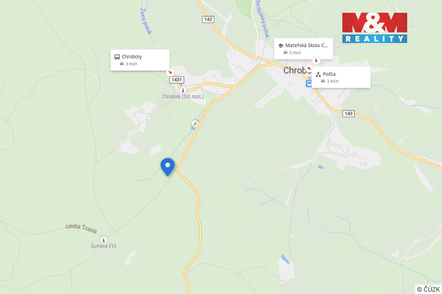 Nabízíme k prodeji jedinečný dům na úplné samotě u lesa v Chrobolech. Cihlová stavba o dispozici 5+kk s užitnou plochou 135 m² stojí na rozlehlém pozemku 9 715 m², který zaručuje absolutní soukromí. V přízemí se nachází obývací pokoj s kuchyní, pokoj pro hosty a koupelna. Patro nabízí tři prostorné ložnice a druhou koupelnu. Dům je ve velmi dobrém stavu, připraven k nastěhování. O komfort se stará úsporné tepelné čerpadlo a stylová kachlová kamna s výměníkem napojená na radiátory i ohřev vody. Díky náletovým dřevinám na vlastním pozemku máte k dispozici nevyčerpatelný zdroj paliva. Velkým benefitem je rozloha a charakter pozemku, který nabízí možnost výstavby další budovy. Nemovitost v čisté přírodě Šumavského podhůří s výbornou dostupností do Prachatic či Krumlova je ideální pro rodinné bydlení, rekreaci i investiční záměr. Pozemek je veden jako trvalý travní porost a skýtá maximální svobodu využití. Přijďte se o výjimečnosti tohoto místa přesvědčit osobně.