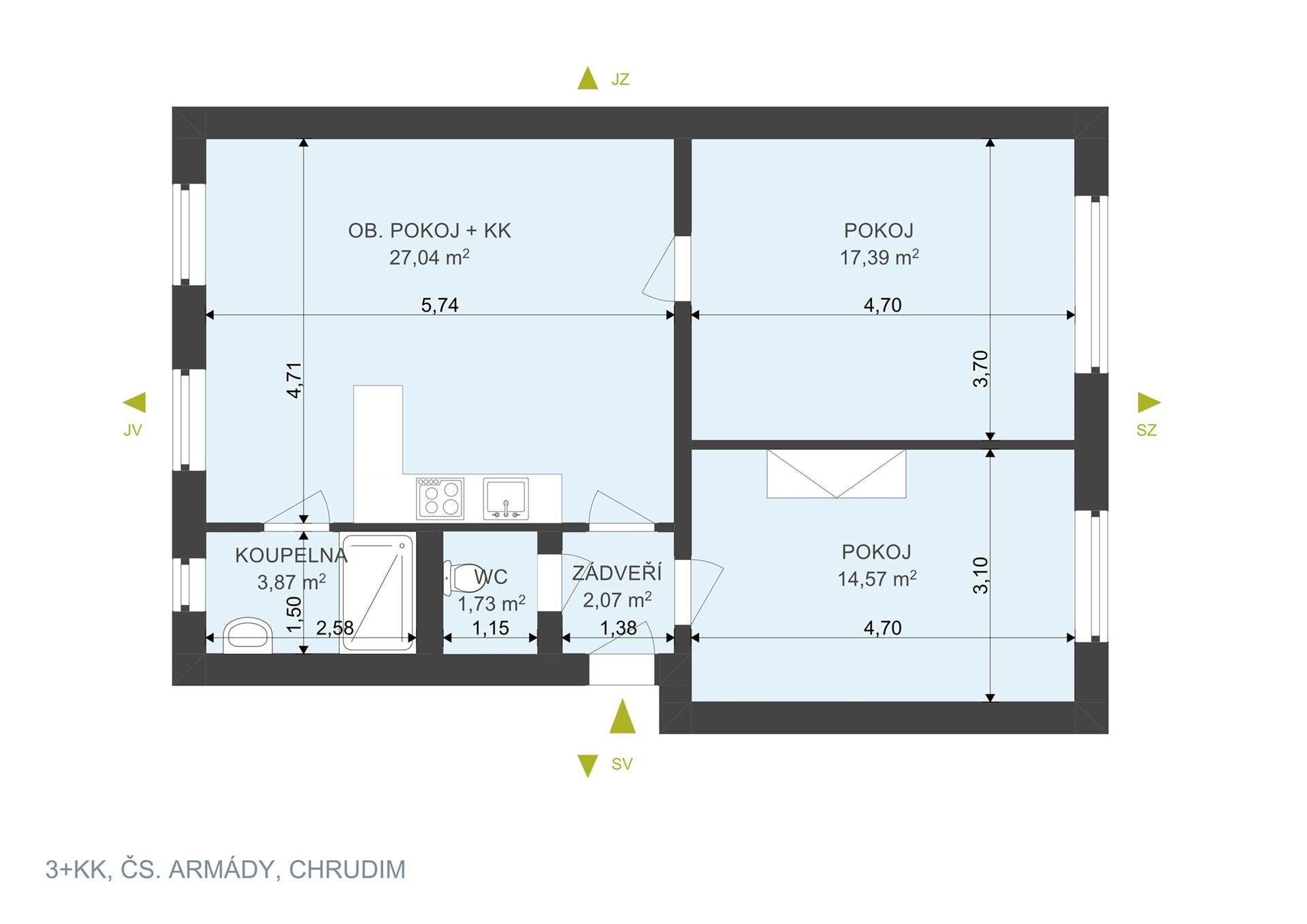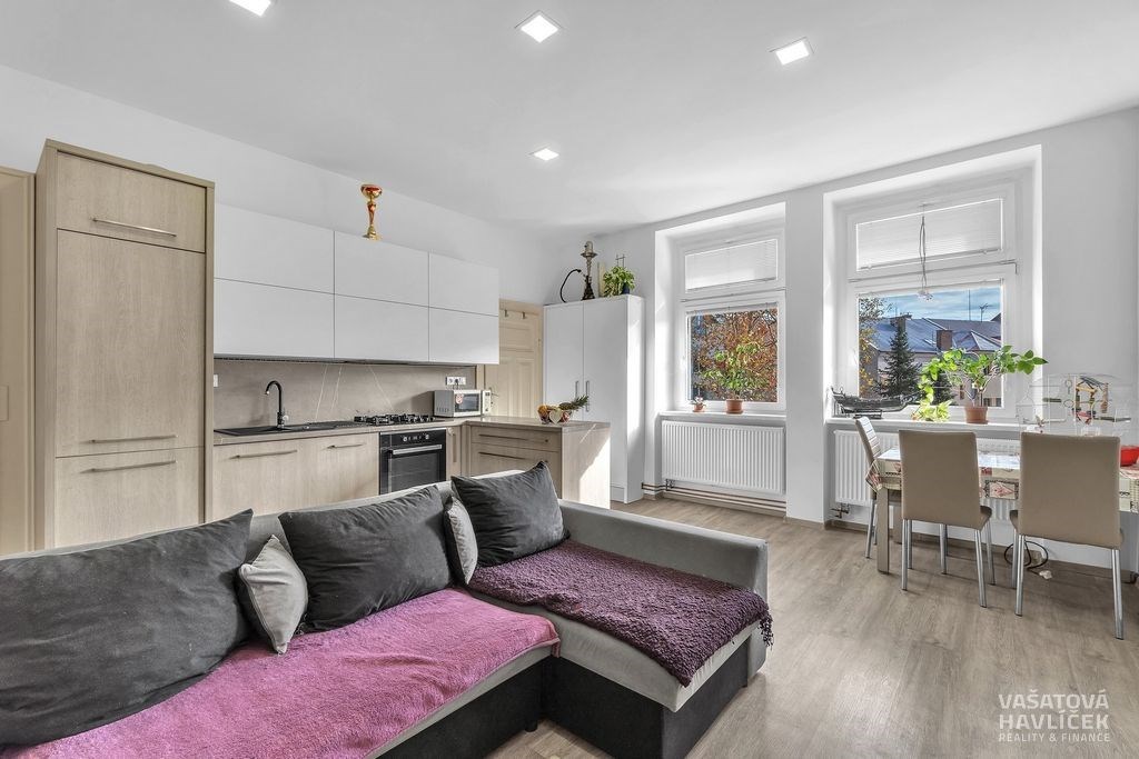 Nabízíme Vám k prodeji byt o dispozici 3+kk v Chrudimi, konkrétně v klidné části města Chrudim IV, ulice Čs. armády. Byt má příjemných 66 m² podlahové plochy a jedním z jeho bonusů je možnost využívat společnou zahradu – ať už k odpočinku, posezení nebo grilování. Nachází se ve 2. nadzemním podlaží cihlového bytového domu a je v osobním vlastnictví. Byt prošel kompletní rekonstrukcí před sedmi lety, kdy byly provedeny úpravy jako sádrokartonové podhledy, plastová okna, nové rozvody elektřiny v mědi a nová instalace vody, odpadů a topení. Součástí úprav byla také nová kuchyňská linka, koupelna a samostatná toaleta. V obytných místnostech je plovoucí podlaha, v koupelně a na toaletě dlažba. Dispozici bytu tvoří prostorný obývací pokoj propojený s kuchyní a jídelním koutem, dva samostatné pokoje, chodba, koupelna a samostatná toaleta. Díky orientaci na severozápad a jihovýchod je byt příjemně prosluněný po celý den. K bytu náleží dva sklepní prostory – drátěná kóje (6 m²) a zděná kóje (17,5 m² – samostatná místnost), a dále také půda. Vytápění a ohřev vody zajišťuje plynový kotel umístněný v bytě. Samostatný vyvložkovaný komín umožňuje pořídit si krbová kamna jako doplňkový zdroj vytápění. Bytový dům prošel částečnou revitalizací – má novou fasádu, zateplení pláště z vnitrobloku, opravené sklepní kóje a také drobné opravy střechy. Do budoucna se počítá s výmalbou ve společných prostorách. V okolí domu je možné bezplatné parkování. Byt leží na dosah centra, přesto v klidné části Chrudimi s kompletní občanskou vybaveností v docházkové vzdálenosti. V okolí najdete obchody, mateřskou i základní školu a zastávky MHD. Díky blízkému autobusovému a vlakovému nádraží je odsud rychlé spojení do Pardubic i dalších okolních měst. Lokalita tak nabízí pohodlí městského života, aniž byste museli ustupovat z nároků na klid a soukromí. Lokalita: potraviny Billa – 2 min. jízdy autem, 7 min. chůzí; zastávka MHD „Čáslavská“ nebo „Aut.st.“ – 3 min. chůzí; ZŠ i MŠ – 2 min. jízdy autem, do 15 min. chůzí; centrum – 13 min. chůzí; autobusové a vlakové nádraží – do 6 min. chůzí; restaurace – do 10 min. chůzí. Tento byt může být díky dispozici 3+kk a krátké docházkové vzdálenosti ke školce, základním i středním školám skvělou volbou pro rodiny s dětmi. Zároveň dobře poslouží i těm, kteří chtějí bydlet poblíž centra, ale ocení klidnější prostředí a rychlé spojení směrem na Pardubice a okolí. Financování bytu Vám rádi pomůžeme vyřešit dle Vašich možností a požadavků. Těšíme se na Vás při prohlídce bytu.