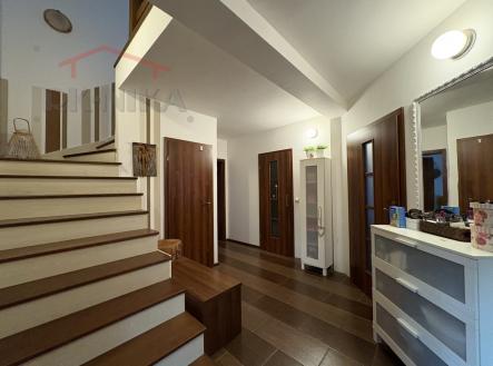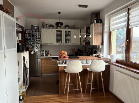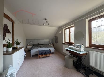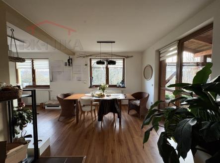 Nabízíme Vám novostavbu rodinného domu s nádhernou vzrostlou zahradou, jejíž součástí jsou okrasné dřeviny a keře. Dům s pozemkem je umístěn na jihozápadním svahu v části obce Chuchelna, která je ideálním místem pro trvalé bydlení i rekreaci. Jedná se o oblíbenou rezidenční oblast s krásnou přírodou, výbornou občanskou vybaveností a snadnou dostupností do Semil, Krkonoš, Jizerských hor a Českého ráje. Dominantou zahrady je potok protékající u hranice části pozemku a dokresluje klidnou atmosféru pro bydlení i relaxaci. Na pozemku se dále nachází vedlejší stavby – dřevník a zahradní domek. Dispozice RD V přízemí se nachází vstupní zádveří s technickou místností (šatna, pračka, elektrokotel, bojler), hala se schodištěm, vpravo koupelna s toaletou a pokoj pro hosty (možno využít jako šatnu či relaxační místnost). Z haly je vstup do kuchyně s jídelním koutem, na kterou navazuje prostorný obývací pokoj s krbem a vstupem na zastřešenou terasu a zahradu. V patře, dostupném po schodišti z haly, je chodba, tři ložnice, toaleta se sprchovým koutem a půdní prostor. K domu náleží přístavba – přístřešek, který lze využít pro skladování dřeva nebo parkování osobního vozu. Rodinný dům byl dokončen a zkolaudován v roce 2008. Podlahy jsou kombinované (keramická dlažba a plovoucí podlahy). Zdrojem tepla je elektrický kotel nebo krb s výměníkem napojeným na ústřední topení v obývacím pokoji. Vytápění je řešeno prostřednictvím topných těles, v koupelně je podlahové vytápění. Při stavbě i zařizování interiéru byly použity kvalitní materiály a vybavení v moderním standardu. Hranice pozemku lemují vzrostlé dřeviny, které zajišťují soukromí a vytvářejí pocit polosamoty a klidného bydlení s venkovskou atmosférou. V pohodlné docházkové vzdálenosti se nachází mateřská a základní škola, sportoviště a místní koupaliště. V nedalekém městě Semily jsou další mateřské, základní i střední školy, široká nabídka obchodů, restaurací a kaváren. Chuchelnu obklopuje krásná příroda – z jedné strany vrch Kozákov, z druhé strany údolí řeky Jizery s Riegrovou stezkou a mnoha dalšími zajímavými místy pro výlety. Užitná plocha domu (přízemí + podkroví): 162 m² Zastavěná plocha RD: 109 m² Zahrada: 1 500 m² Celková výměra pozemku: 1 700 m².