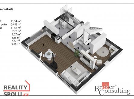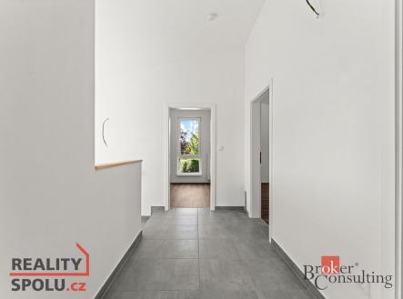 Nabízíme k prodeji novostavbu rodinného domu v atraktivní lokalitě Chýně. Dům o dispozici 6+kk poskytuje dostatek prostoru pro komfortní rodinné bydlení. V přízemí se vstupuje do centrální chodby (10 m2) s přístupem do ostatních místností. Přímo za dveřmi je vchod do koupelny se sprchovým koutem a WC (6,7 m2). Následující místnost může být využita jako pracovna nebo technická místnost (7,3 m2). Po pracovně je vstup do největší místnosti, a to obývacího pokoje (40 m2), s velkými francouzskými okny. Ty umožňují východ na zahradu nebo budoucí terasu. Obývací pokoj volně přechází do kuchyňského koutu s připravenými rozvody a výhledem na příjezdové stání. Poslední místnost v přízemí (11,5 m2) je s výhledem na zahradu. Pod schodištěm do prvního patra je prostor (2,7 m2), který je možné využít jako komoru. V prvním patře najdete tři pokoje. Ložnice (20 m2) a dva dětské pokoje (20 a 11,5 m2). Všechny pokoje jsou prosvětleny velkými okny. Dále je zde místnost (4 m2) využitelná jako šatna. Dominantou prvního patra je komfortní prostorná koupelna (11 m2) s vanou, sprchovým koutem, dvěma umyvadly a WC. Lepší představu o rozložení místností si uděláte z půdorysů, které jsou mezi fotografiemi. Všechny obytné místnosti v domě mají vinylové podlahy. Ve zbytku domu, včetně schodiště, je keramická dlažba. Dům má pro vytápění a ohřev teplé užitkové vody úsporný kondenzační plynový kotel. Celý dům je navržen s důrazem na moderní a funkční bydlení. Město Chýně je oblíbenou lokalitou díky své kompletní občanské vybavenosti a snadné dostupnosti do Prahy. Najdete zde státní i soukromé školky, dvě základní školy do 9. třídy, lékařské ordinace, poštu, menší fitness centrum, restaurace a jiné služby. Z obchodů například nedaleká Billa nebo 2 večerky. V Chýni se také nachází Pivovarský dvůr, kde se místní rádi scházejí. Výborné spojení do Prahy zajišťují dvě vlakové zastávky a autobusové linky směřující na metro B-Zličín a metro A-Motol. V blízkém okolí jsou přírodní stezky, cyklotrasy a rybníky, které můžete ocenit pro čas odpočinku a relaxace. Pro více informací, nebo domluvení prohlídky, mě neváhejte kontaktovat.
