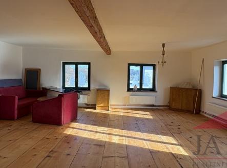 Nabízíme na prodej bývalou zemědělskou usedlost, nyní rodinný dům (4+kk; podl. pl.: cca 150 m2) po rekonstrukci obytné části s navazující hospodářskou částí (stodolou, stáj, chlív, parkovací stání pro zem. stroje) a uzavřeným dvorem, zaručující absolutní soukromí, stojící v původní zástavbě v obci Čímice u Sušice 8 km. Nutno vidět skvěle provedenou rekonstrukci obytné části a potenciál celé nemovitosti! Popis: vstup skrze zastřešenou dřevěnou verandu s posezením; 1.NP: předsíň se schodištěm do 2.NP, komora, sam. WC, stylová koupelna (vana, umyv. se zrcadlem a skříňkou, topný žebřík), prostorný obývací pokoj 40 m2 s dřevěnou podlahou, jídelnou, kuch. koutem (stylová rohová kuch. linka s HV troubou, plynovými hořáky) a sporákem na T.P. s výměníkem, ložnice; 2.NP: podesta, prostorný pokoj 40 m2 s původní zbroušenou dřevěnou podlahou, nedokončená ložnice a koupelna. Vedlejší stavby: navazující výminek (havarijní stav) s vlastním vstupem, hospodářská část – stodola, chlív, maštale, parkování zem. strojů, aktuálně užívaný jako parkoviště. Zastavěná plocha a nádvoří: 1.409 m2; Podlahová plocha obytné části: cca 150 m2; Voda: 2x vlastní kopaná studna (pitná a užitková pro zvěř); možnost napojení na obecní řad Odpad: žumpa s přepadem (nutno řešit). El.: 220/380 V; Plyn: není; Vytápění: ÚT – kotel na T.P. nebo nový sporák s výměníkem na T.P.; elektrické odporové podlahové topení v koupelně; Obyvatelný dům za odpovídající cenu po započaté částečné rekonstrukci (euro okna, okapy, zastřešená dřev. veranda, nová koupelna vč. stylové sanity, obkladů a měděných baterií; rozvody vody a odpadu v plastu, nová el. vč. jističe, nová kuch. linka, nové dlažby a renovované smrkové podlahy, nové omítky, štuky a výmalba, podlahové topení v koupelně), v klidné vesničce Čímice v podhůří Šumavy u střediskové obce Žichovice se základní vybaveností (obchod, MŠ a ZŠ, OÚ, pošta, praktický doktor, kadeřnice, fotbalové hřiště s výčepem, kostel, SDH, výborné vlakové a BUS spojení, řeka Otava s vodáckým kempem).