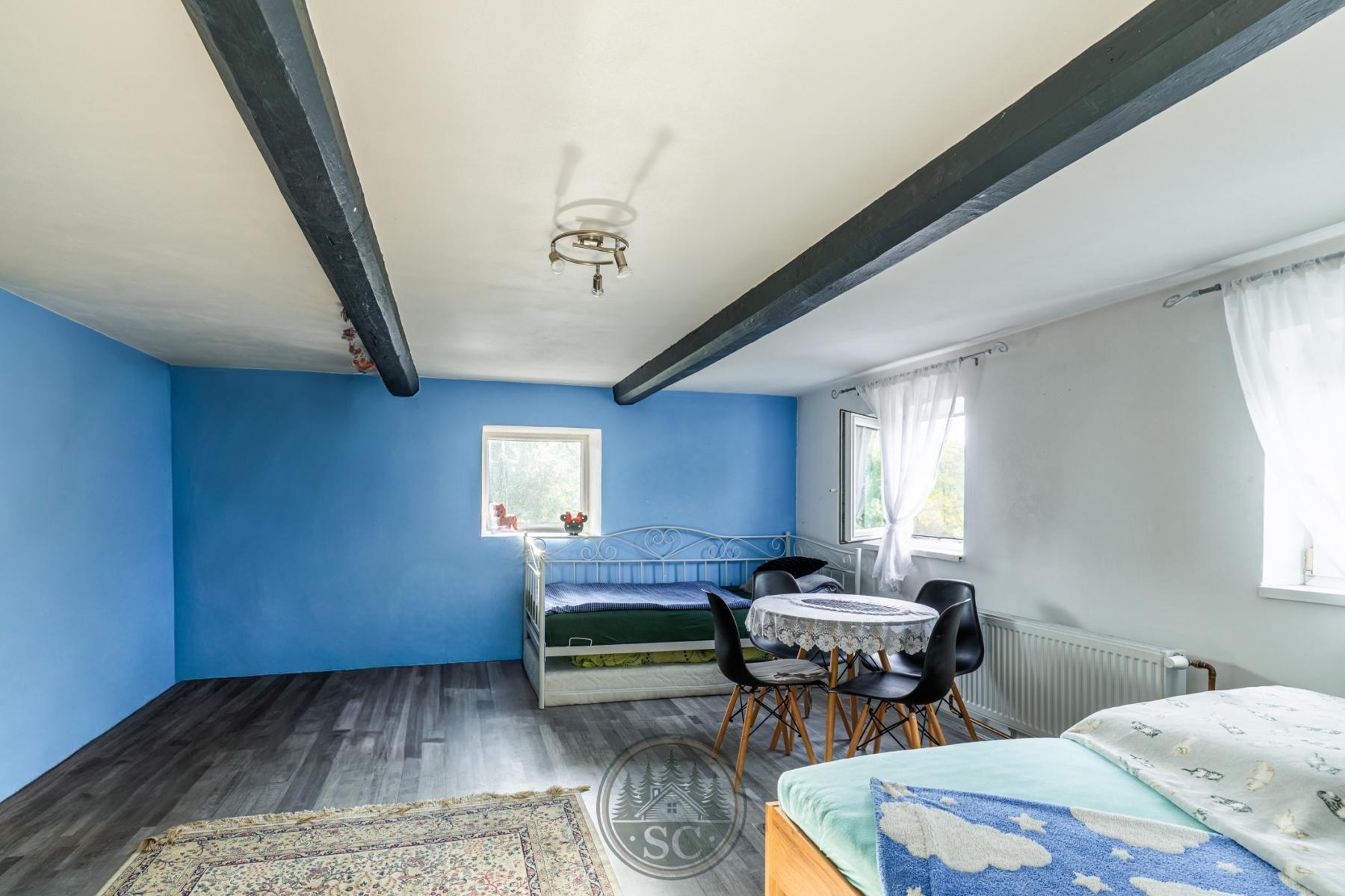 Hledáte dům s velkou zahradou a soukromím? Tento volně stojící rodinný dům se nachází v okrajové části obce Hlavno, s dobrým příjezdem po místní komunikaci. Je napojený na všechny inženýrské sítě - plyn, voda, kanalizace, elektřina. V posledních letech prošel řadou úprav - má nový plynový kotel Viessmann (5 let), nový bojler a rozvody topení v mědi. Dispozice domu je promyšlená a útulná. Vstupem se dostanete do předsíně, dále se zde nachází kuchyň s linkou a sporákem, obývací pokoj, ložnice, dvě menší místnosti (jedna slouží jako spíž), zrekonstruovaná koupelna se sprchovým koutem a WC. V kuchyni vynikají krásné stropní trámy, které prostoru dodávají příjemnou venkovskou atmosféru. V podkroví je ložnicová část rozdělená na dva dětské pokoje - i zde jsou dřevěné trámy, které interiéru dodávají osobitý charakter - a další samostatné WC. RD disponuje také půdními prostory. Dům má plastová okna, zateplení ze dvou stran a je částečně podsklepený - do sklepa se dá vstoupit jak z interiéru, tak přímo ze dvora. Na dvoře se nachází prostorná zděná garáž, hospodářská budova využívaná pro chov slepic a samostatný zemní sklep, ideální pro uskladnění zeleniny. U vstupu do domu bylo navíc vybudováno zastřešené venkovní posezení, které vytváří příjemné místo pro odpočinek nebo rodinné grilování. Dvůr nabízí dostatek prostoru pro parkování, zahradní zázemí, drobný chov a zároveň skýtá možnost pro vybudování bazénu. Podlahy jsou řešeny kombinací dlažby (kuchyň, WC, předsíň) a plovoucí podlahy (ostatní místnosti). Jeden komín je vyvložkovaný, druhý se nevyužívá. Dům má sedlovou střechu a působí poctivě postaveným a pečlivě udržovaným dojmem. Obec Hlavno nabízí praktické spojení s městy Sokolov a Kynšperk nad Ohří. Dvůr i zahrada domu poskytují dostatek prostoru k parkování, zahradničení nebo venkovním aktivitám. Tento dům je ideální pro ty, kteří hledají prostorné bydlení s vlastním zázemím a možností upravit si okolí podle svých potřeb. Prohlídku velmi doporučuji. Uvedené výměry jsou orientační, vycházející ze znaleckého posudku. Veškeré zveřejněné údaje obsažené v tomto inzerátu mají pouze informativní charakter a nejsou nabídkou ve smyslu §1731 nebo §1732 občanského zákoníku, ani se nejedná o veřejný příslib dle §1733 občanského zákoníku.