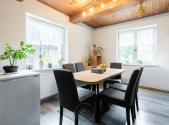 Volně stojící rodinný dům se nachází v okrajové části obce Hlavno, s dobrým příjezdem po místní komunikaci. Je napojený na všechny inženýrské sítě včetně plynu a v posledních letech prošel řadou úprav - má nový plynový kotel Viessmann (cca 4 roky), nový bojler a rozvody topení v mědi. Dispozice domu je promyšlená a útulná. Vstupem se dostanete do předsíně, dále se zde nachází kuchyň s linkou a sporákem, obývací pokoj, ložnice, dvě menší místnosti (jedna slouží jako spíž), zrekonstruovaná koupelna se sprchovým koutem a WC. V kuchyni vynikají krásné stropní trámy, které prostoru dodávají příjemnou venkovskou atmosféru. V podkroví je ložnicová část rozdělená na dva dětské pokoje - i zde jsou dřevěné trámy, které interiéru dodávají osobitý charakter - a další samostatné WC. Ze schodišťové chodby je umožněn přístup na střechu i do půdních prostor. Dům má plastová okna, zateplení ze dvou stran a je částečně podsklepený - do sklepa se dá vstoupit jak z interiéru, tak přímo ze dvora. Na dvoře se nachází prostorná zděná garáž, hospodářská budova využívaná pro chov slepic a samostatný zemní sklep, ideální pro uskladnění zeleniny. U vstupu do domu bylo navíc vybudováno zastřešené venkovní posezení, které vytváří příjemné místo pro odpočinek nebo rodinné grilování. Dvůr nabízí dostatek prostoru pro parkování i zázemí pro zahradní práce či drobný chov. Podlahy jsou řešeny kombinací dlažby (kuchyň, WC, předsíň) a plovoucí podlahy (ostatní místnosti). Jeden komín je vyvložkovaný, druhý se nevyužívá. Dům má sedlovou střechu a působí poctivě postaveným a pečlivě udržovaným dojmem. Obec Hlavno nabízí praktické spojení s městy Sokolov a Kynšperk nad Ohří. Dvůr i zahrada domu poskytují dostatek prostoru k parkování, zahradničení nebo venkovním aktivitám. Tento dům je ideální pro ty, kteří hledají prostorné bydlení s vlastním zázemím a možností upravit si okolí podle svých potřeb. Prohlídku velmi doporučuji. Uvedené výměry jsou orientační, vycházející ze znaleckého posudku. Veškeré zveřejněné údaje obsažené v tomto inzerátu mají pouze informativní charakter a nejsou nabídkou ve smyslu §1731 nebo §1732 občanského zákoníku, ani se nejedná o veřejný příslib dle §1733 občanského zákoníku.