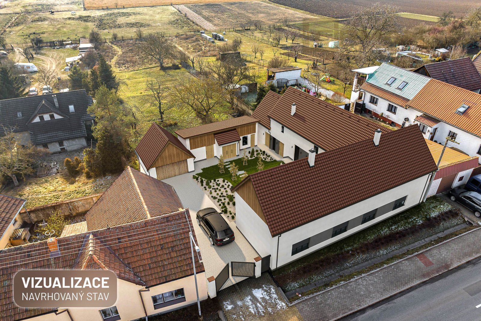 Na klidném místě v obci Cítov, přesně na půl cesty mezi Mělníkem a Roudnicí nad Labem, se nachází rodinný dům, který v sobě nese poctivost venkovského stavení, velkorysý prostor a mimořádný potenciál do budoucna. Nemovitost je ideální volbou pro ty, kteří hledají klid, soukromí, možnost vytvořit si domov přesně podle vlastních představ a zároveň skvělou dostupnost do Prahy a k hlavním dálničním tahům. Dům má zastavěnou plochu 199 m² a celková předpokládaná plocha všech prostor – včetně půdy, chlévů, garáží, dílen, sklepů a dalších technických místností – činí přibližně 400 m². Obytná část domu nabízí v současnosti dispozici 4+1 s obytnou plochou cca 90 m². Dva pokoje, kuchyně a koupelna s toaletou jsou ihned obyvatelné, což umožňuje pohodlné bydlení už od prvního dne a postupnou rekonstrukci dle vlastního tempa a možností. Dům je napojen na veškeré inženýrské sítě – obecní vodu, obecní kanalizaci, plyn i elektřinu (200 V / 400 V). K dispozici je také vlastní studna. Vytápění je řešeno plynem. Součástí nemovitosti je velké množství technických a hospodářských prostor – garáže, kůlny, dílny, sklepy, truhlárna – které ocení nejen řemeslníci, ale i všichni, kdo potřebují prostor pro práci, podnikání nebo koníčky. Zcela výjimečným benefitem je rozlehlá půda, která nabízí možnost vybudování nadstandardních podkrovních prostor. Lze zde realizovat další obytné místnosti, samostatné bytové jednotky, apartmány nebo velkorysé úložné prostory. Půdu je zároveň možné ponechat v původním stavu a zachovat tak autentický charakter venkovského domu. Nemovitost se nachází na pozemku o celkové výměře 1 899 m², přičemž celý pozemek je dle územního plánu stavební. Při drobné úpravě pozemku lze uvažovat i o výstavbě dalšího domu v jeho spodní části, za předpokladu zajištění samostatné příjezdové cesty. Lokalita nabízí výbornou dopravní dostupnost. Na dálnici D8 se dostanete přibližně za 8 minut, odkud je rychlé spojení do Prahy. Do Mělníka i Roudnice nad Labem dojedete rovněž zhruba za 8 minut. V obci Cítov je k dispozici obchod, lékař, obecní úřad, restaurace a další základní občanská vybavenost, přičemž kompletní služby nabízí blízký Mělník. Samozřejmostí je také pravidelné autobusové spojení. Tato nemovitost je ideální volbou pro ty, kteří hledají prostor, klid a dlouhodobý potenciál – ať už pro rodinné bydlení, vícegenerační soužití, kombinaci bydlení a podnikání, nebo investiční záměr. Dům, který dává svobodu, možnosti a čas vytvořit si skutečný domov. Cítov, je místo, kde se vám bude skvěle žít, za což ručíme, neboť i my zde našli nový domov a bydlíme jen 200 metrů od této výjimečné nemovitosti. Zároveň je zde velmi vysoký potenciál růstu ceny, osobně Vám rád vysvětlím detaily. Těším se na Vás při prohlídce Petr Firman „Veškeré údaje uvedené v popisu jsou informativní a mohou se v průběhu času lišit. Přesnost informací je zajištěna podle dostupných podkladů, nicméně drobné nesrovnalosti jsou vyhrazeny.“