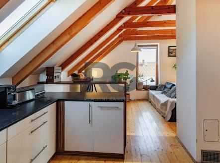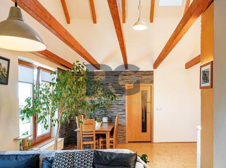 Exkluzivně nabízíme k prodeji podkrovní byt o dispozici 4+kk. Byt o výměře podlahové plochy 124,7 m2 nabízí světlý obývací prostor s krbem, kuchyň a tři samostatné ložnice. Kuchyně je vybavena spotřebiči - lednicí, myčkou, troubou, varnou deskou a digestoří. Jedna z ložnic disponuje samostatnou koupelnou se sprchovým koutem, umyvadlem a toaletou; druhá koupelna, se vstupem z haly, je s vanou, umyvadlem a přípojkou na pračku. Druhá toaleta je samostatná. Hala bytu poskytuje dostatek úložného místa, stejně tak půdní prostor o výměře 35 m2 přístupný po žebříku z haly. V obývacím prostoru, díky vysokým stropům do krovu, lze umístit vestavbu a vytvořit tak další obytnou část. K bytu je možné přikoupit řadovou garáž se zavedenou elektřinou za cenu 550.000 Kč. Obec Čížová se nachází 7 km od královského města Písku, je dostupná rovněž po železnici. V obci je k dispozici školka, základní škola, obchod, služby a lékař. Přímo v domě pak kadeřnictví a zubní ordinace. Napojení na D4 je po 3 km jízdy. Pro více informací a sjednání prohlídky mě neváhejte kontaktovat.