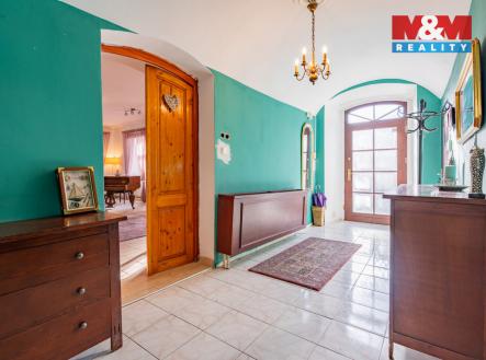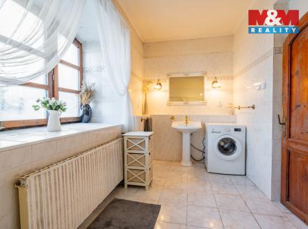 Nabízíme ke koupi prostorný dům o podlahové ploše 206 m², který je ideální pro kombinaci bydlení a podnikání. Polovina domu slouží k bydlení, druhá polovina je určena k podnikatelskému využití, přičemž je aktuálně zkolaudována jako ordinace. Nemovitost má dva hlavní vstupy, což umožňuje praktické oddělení soukromé a pracovní části, dále sociální zázemí a je částečně podsklepená. Dům je napojen na veřejný vodovod i kanalizaci. Vytápění je řešeno plynovým kotlem s radiátory, k dispozici krb v hlavní obytné místnosti. Rekonstrukce byla započata, což novým majitelům umožňuje dokončit jak obytné, tak podnikatelské prostory dle vlastních potřeb a představ. Součástí nemovitosti je samostatná garáž s přímým vjezdem z ulice, dílna (sklad), zahradní domek a parkovací plocha pro až 4 vozy. Zahrada nabízí venkovní krb a přímý vstup do jídelny. Nachází se zde také stavební jáma o rozměrech cca 9 × 4 m po původním bazénu, kterou lze využít pro vybudování jezírka nebo nového bazénu. Nájezd na D4 6km.