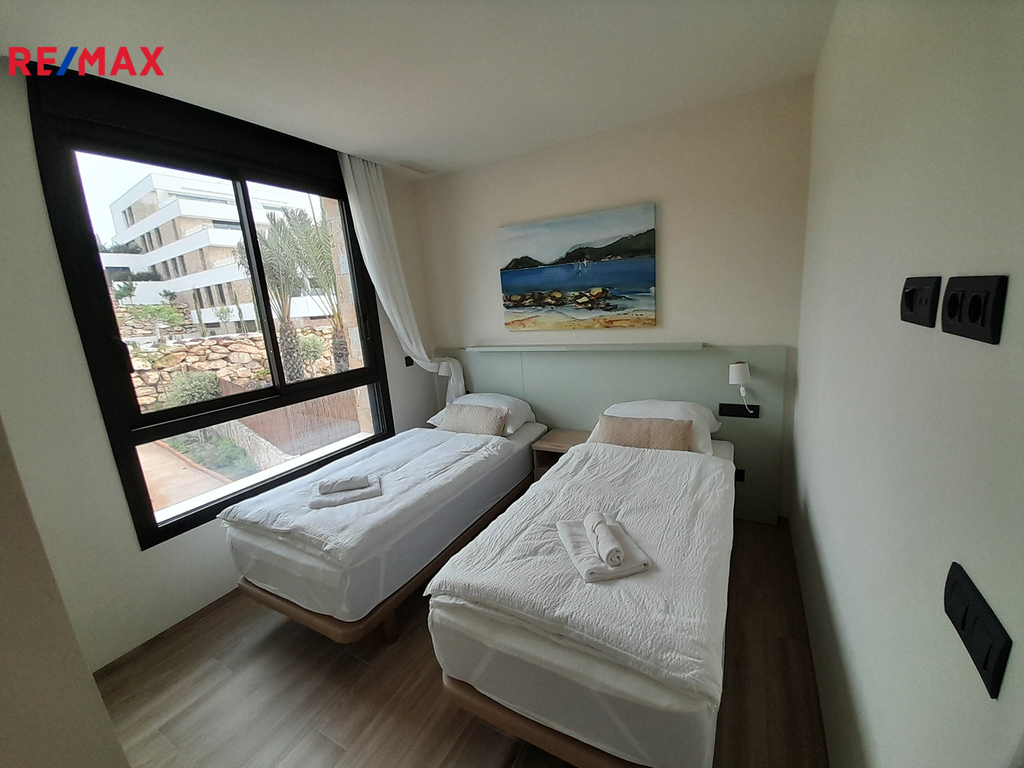 Nabízíme k pronájmu elegantní apartmán o dispozici 3+kk (75 m²), situovaný v prvním patře rezidence v malebné části soukromého golfového resortu Las Colinas Golf & Country Club, je součástí zcela nového rezidenčního projektu Kumquat z roku 2024 - v oblasti Orihuela Costa – v údolí obklopeném pomerančovými háji, pár minut od vyhlášených pláží Costa Blanca. Tento slunný a moderně zařízený apartmán disponuje dvěma ložnicemi s oddělitelnými lůžky, dvěma koupelnami s podlahovým vytápěním, prostorným obývacím pokojem s QLED televizí a plně vybavenou kuchyní se špičkovými spotřebiči. Dominantou bytu je impozantní terasa o výměře 28 m² s výhledem do okolí, ideální pro odpočinek i posezení s přáteli – třeba při venkovním grilování. Samozřejmostí je klimatizace a topení ve všech místnostech, stejně jako vysokorychlostní internet. V ceně je zahrnuto i podzemní parkovací stání a soukromý skládek. Rezidenti mají k dispozici soukromý venkovní bazén se slunečníky, lehátky, sprchami, toaletami a převlékárnou – pouze pro obyvatele domu. Apartmán je součástí uzavřeného resortu Las Colinas Golf & Country Club, který nabízí: špičkové 18jamkové golfové hřiště světové úrovně, moderní fitness centrum a wellness, 3 tenisové a 2 paddle kurty, možnost vodních sportů, cyklistiky, turistiky i rybaření – včetně výprav na moře. Lokalita: Orihuela Costa je ideálním místem pro milovníky přírody, klidu i aktivního odpočinku. Blízké pláže s jemným pískem a křišťálově čistou vodou (nejbližší Playa de Campoamor) jsou vzdáleny jen pár minut jízdy. Výborná dostupnost – letiště v Alicante je vzdáleno pouhých 50 minut jízdy a z mnoha evropských měst včetně Prahy či Vídně sem létají přímé lety po celý rok. Po vzájemné dohodě je možnost i krátkodobého pronájmu: období listopad/březen 120 €, duben/květen 130 €, červenec/září 140 € noc. Speciální termíny po dohodě + servisní poplatek 120 € a vratná kauce 100 €. Ceny jsou uvedeny za pronájem celého apartmánu, maximální počet osob 4. Zdejší klima je jedno z nejzdravějších v Evropě – ideální pro celoroční relaxaci i aktivní životní styl.