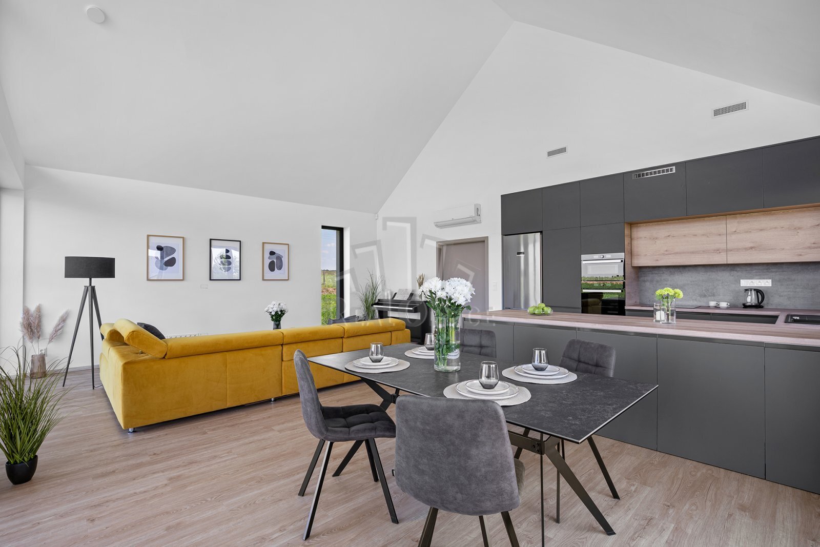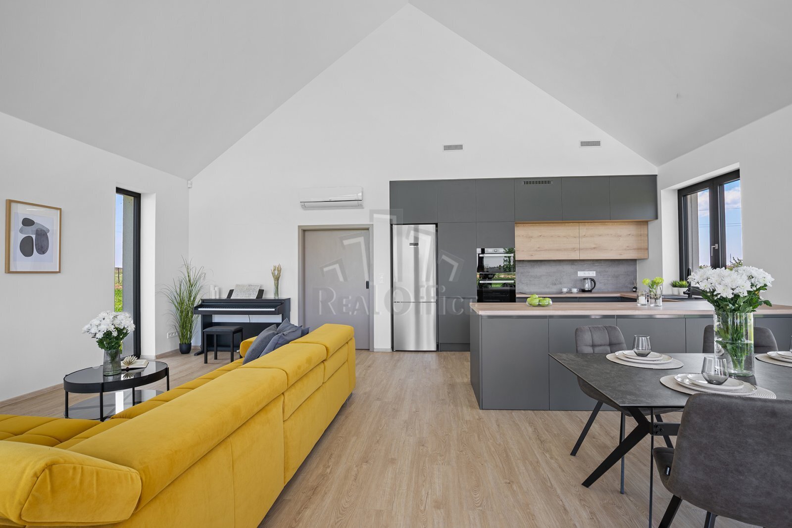 Toužíte po klidném bydlení uprostřed přírody, s dostatkem prostoru a maximálním soukromím? To a ještě více Vám poskytne novostavba RD 4+kk s terasou, dvěma koupelnami i šatnami, v okr. Brno-venkov, na okraji městyse Deblín - místa, které spojuje výhody venkovského života s dobrou dostupností do města. Tato nízkoenergetická, moderně řešená novostavba s užitnou plochou 151m2 stojí na vlastním pozemku o rozloze 7.362m2, se zastavěnou plochou a nádvořím 193m2. Nabízí tak nejen komfortní bydlení, ale i dostatek prostoru a široké možnosti využití velkorysého pozemku. Dominantou domu kolaudovaného v roce 2024 je obývací část propojená s kuchyní a jídelnou o CP 48,5 m2, což odpovídá modernímu konceptu bydlení. Přes velká okna se společenská místnost otevírá do zahrady. Přechod mezi interiérem a zahradou tvoří prostorná terasa vydlážděná velkoformátovými keramickými dlaždicemi, které ladí s celkovým stylem stavby. V domě dále najdete ložnici se šatnou a koupelnou, dva pokoje, samostatnou toaletu, samostatnou koupelnu, technickou místnost, komoru a pochozí půdní prostory. Jedná se o prosvětlený bezbariérový dům. K efektivnímu vytápění a úspoře energie slouží tepelné čerpadlo a rekuperace. Bílá fasáda domu je jednoduchá a čistá. Vytváří kontrast s tmavými prvky, což stavbě dodává sofistikovaný vzhled. Sedlová střecha je skvělá z hlediska odvodu vody a zároveň se esteticky hodí do venkovského prostředí. K dispozici je kompletní architektonická studie pro dostavbu dvojgaráže, dílny, fitness (užitná plocha 112 m2, základová deska již vybudována) a bazén. Nemovitost je vybavena moderním zabezpečovacím systémem Jablotron a inteligentní chytrou domácností pro maximální komfort a bezpečí, samozřejmostí je klimatizace, dále příprava pro venkovní rolety, hliníková okna antracit, francouzská okna, podlahové vytápění, kamerový a bezpečnostní systém, vrt na užitkovou vodu, příprava na vytápění bazénu. Energ.tř. A. Deblín nabízí plnou občanskou vybavenost včetně základní a mateřské školy, obchodů, restaurací, lékařské péče i sportovišť. Díky klidnému prostředí a dobré dostupnosti Brna je tato lokalita ideální pro rodinné bydlení. Máte zájem o více informací? Neváhejte nás kontaktovat, rádi Vás touto zajímavou nemovitostí provedeme osobně.
