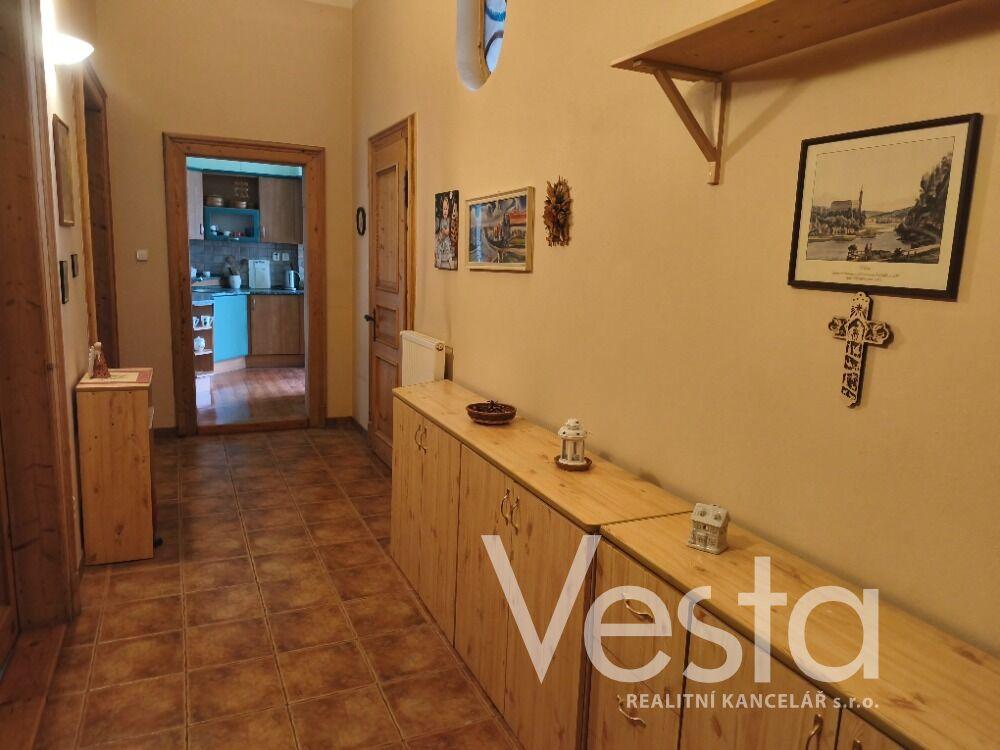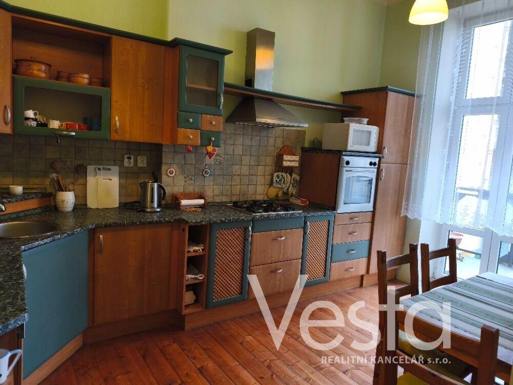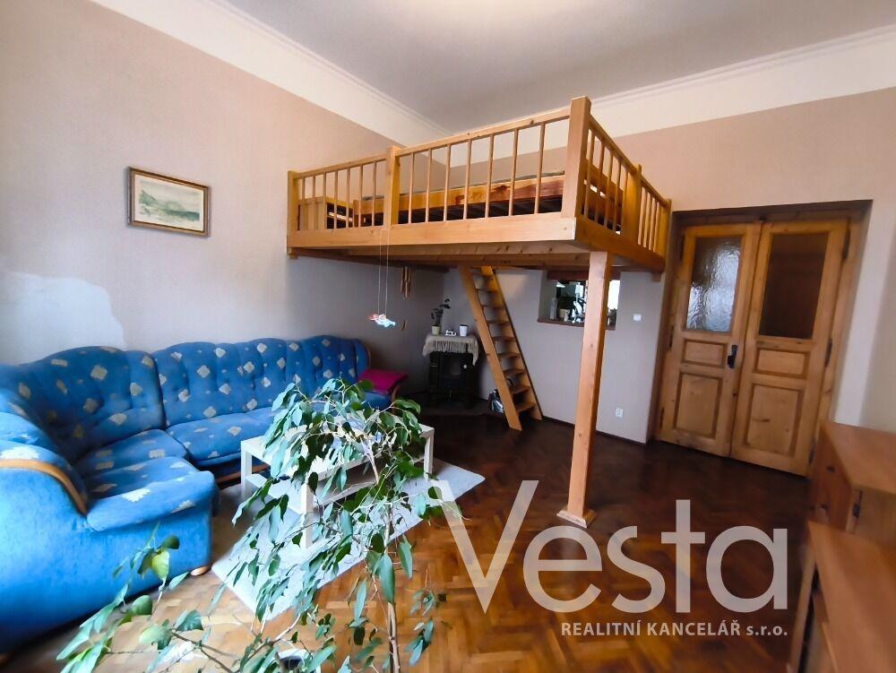 Nabízíme pronájem prostorného bytu o velikosti 2+1 s vestavěným patrem na spaní a podlahové ploše 77 m2, který se nachází ve zvýšeném přízemí cihlového domu v centru města, ulici 28. října. Bytovou jednotku k dlouhodobému pronájmu tvoří vstupní předsíň, kuchyně s kuchyňskou linkou a vestavěnými spotřebiči, odkud je vstup na terasu. Dále obývací pokoj s vestavěným patrem a krbovými kamny, prostorná ložnice a koupelna s vanou i se sprchovým koutem a toaletou. Vytápění bytu a ohřev vody je zajištěn vlastním plynovým kotlem a krbovými kamny v obývacím pokoji. V Bytě jsou krásné dřevěné dveře s obložením. Cena pronájmu je uvedena bez měsíčních záloh (voda a provozní výdaje domu), které pro tři osoby činí cca 1560 Kč. Elektřina a plyn na vlastní účet nájemce. Pěkné bydlení v žádané lokalitě s veškerou občanskou vybaveností v pěším dosahu.