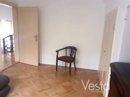 Výjimečná vila se nachází téměř na konci slepé ulice Na Vinici. Z domu se snadno během několika minut dostanete pěšky do centra města, nebo máte-li rádi procházky v přírodě, přímo ze zahrady vstoupíte do rozsáhlého lesoparku na Pastýřské stěně. Každý den se budete těšit úžasnými výhledy na město a jeho okolí. Tento elegantní dům prošel rozsáhlou citlivou rekonstrukcí a je v dobrém technickém stavu. V přízemí je vstupní hala s nádherným dřevěným schodištěm, dále kuchyně s navazující jídelnou, obývacím pokojem a pracovnou, kterou oddělují od obývací části úžasné původní zapuštěné posuvné dveře. Obytné prostory zdobí promyšlené úložné prostory, vestavěné knihovny a parketové podlahy. Po dřevěném schodišti vstupujeme do 1. patra, kde se nachází 4 ložnice, terasa, koupelna a WC. Dům je plně podsklepený, přičemž v polozapuštěném suterénu byla vybudována samostatná bytová jednotka 3+kk s vlastním vchodem ze zahrady, nyní užívána jako kancelář. Dále je zde umístěna kotelna s kondenzačním plynovým kotlem. Příslušenství domu tvoří permakulturní zahrada s okrasným jezírkem. Celková výměra pozemků je 825 m2. Dům je napojený na veřejný rozvod vody, kanalizace, elektřiny a plynu. V případě zájmu lze přikoupit samostatnou řadovou garáž v těsné blízkosti domu.