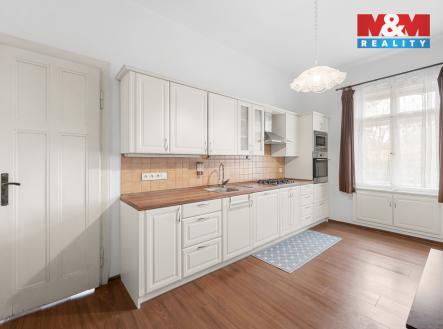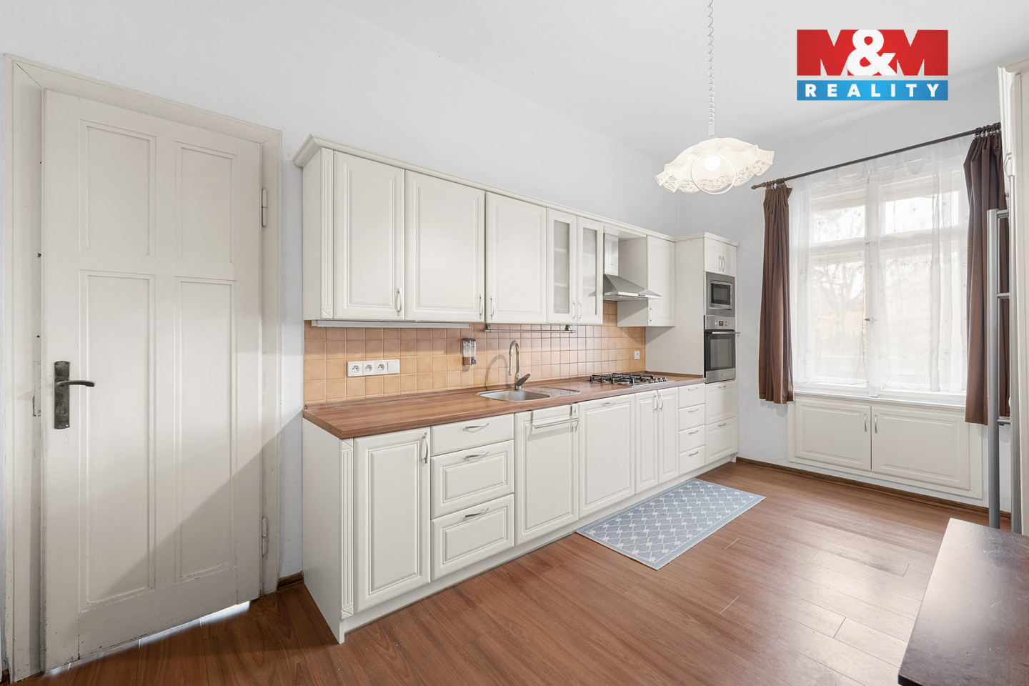 Nabízíme k prodeji jedinečný mezonetový byt v noblesní prvorepublikové vile z roku 1913, která si dodnes hrdě nese svůj původní šarm i atmosféru. Už při vstupu ucítíte, že jde o bydlení s duší – a s příběhem. Byt o velikosti 150 m² má samostatný vstup ze zahrady a působí dojmem rodinného domu. Přízemí tvoří stylová předsíň a prostorná hala se schodištěm do horní části bytu. V patře vás čeká krásně otevřený obytný prostor: galerie, kuchyň, světlý obývací pokoj s balkónem, útulná ložnice s přímým vstupem na terasu a samostatný pokoj pro hosty s dalším balkónem. Kuchyň i koupelna prošly rekonstrukcí, kuchyň je vybavena vestavěnými spotřebiči a americkou lednicí. Koupelna nabízí jak vanu, tak sprchový kout. Byt se prodává kompletně vybavený, takže stačí jen otevřít dveře a začít bydlet. Obrovským bonusem je možnost užívání nádherné, udržované zahrady o rozloze 1 402 m² se vzrostlými stromy – ideální prostor pro relax, grilování nebo klidné víkendové chvíle. Těšíme se na zavolání