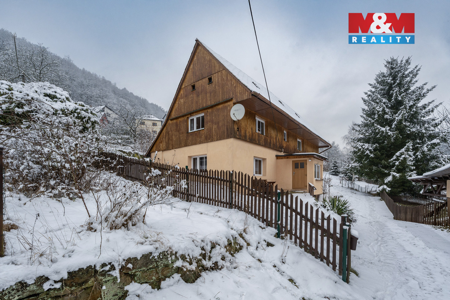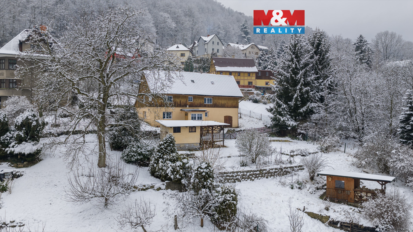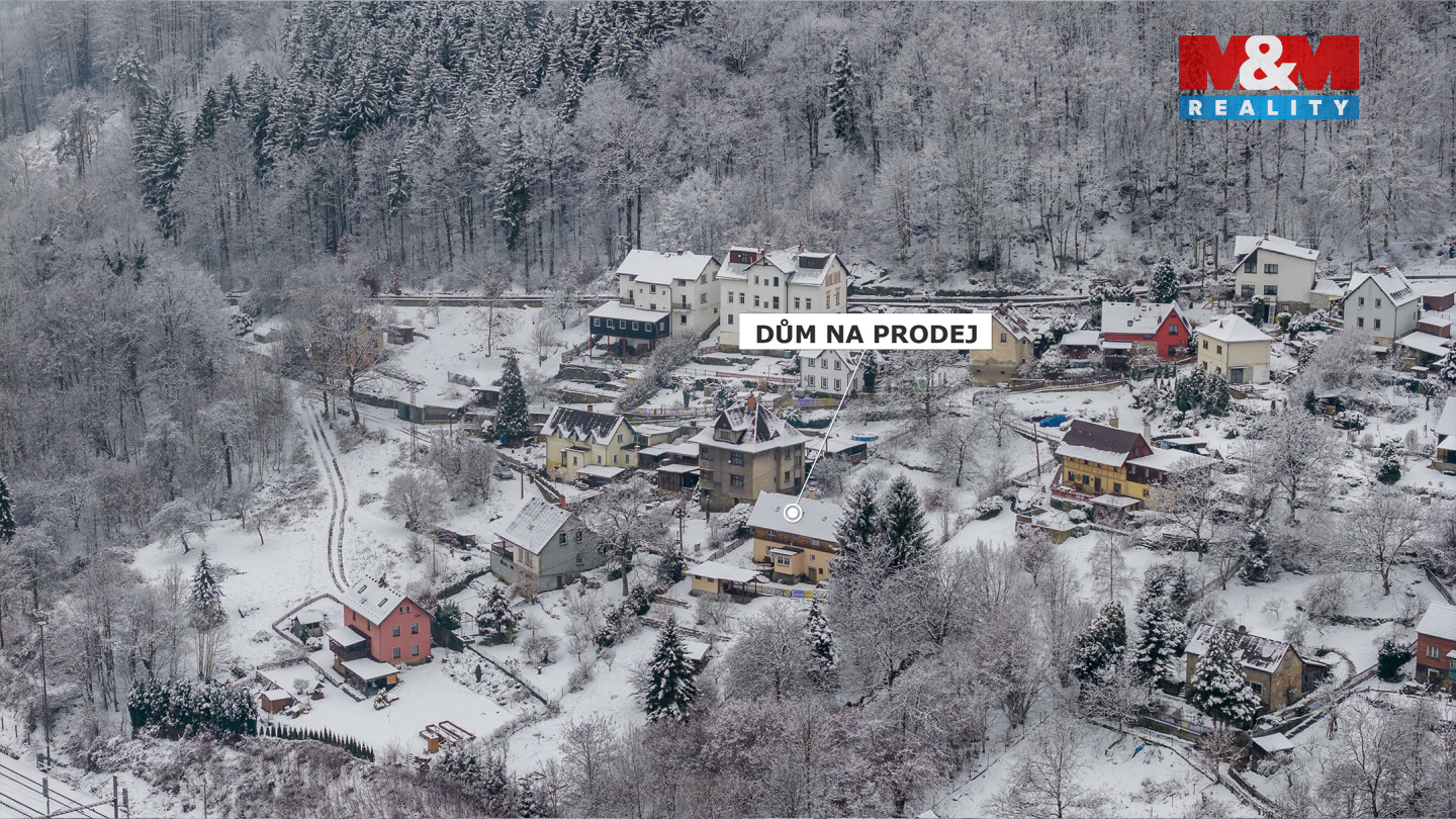 Nabízíme dům s dlouhou historií umístěný na východním svahu Žlebského údolí, který zhlíží na vinoucí se Labe a masiv Růžového hřebene. Okolní příroda a vodní hladina spoluvytvářejí pocit klidu a zpomalují čas. Možná právě pro tyto pocity si naši předci zvolili toto místo za svůj domov. Je jen na vás, zda zde budete bydlet, rekreovat se či dům pronajímat. Stavba nabízí prostor pro velkou rodinu, kdy v přízemí naleznete prostorné zádveří a chodbu, ze které vlevo vstupujete do velké místnosti, která slouží jako obývací pokoj, jídelna a kuchyně zároveň. Vpravo pak je prostorná koupelna a toaleta s komorou. Ve 2 NP se nachází klidová část v podobě 3 pokojů. Na své využití čeká půda, která nyní slouží jako úložný prostor. V suterénu je technická místnost, dílna a původní hospodářská část. Pod domem je umístěn dřevník s krytou pergolou. Velká zahrada poskytuje dostatek místa pro vaši relaxaci, stejně tak pro vaše výpěstky či domácí mazlíčky. Všechny služby najdete ve 2,5 km vzdáleném Děčíně.