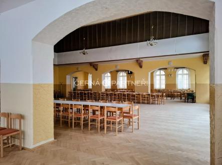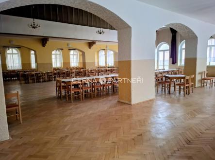 Nabízíme k prodeji objekt v centru Děčína s restaurací a velkým sálem. K domu patří i velká skladová hala se sociálním zařízením. V přízemí se nachází restaurace s kuchyní a technickými prostory. V 1 NP se nachází malý sál využívaný jako salonek s vlastní WC a technickými prostory. V 2 NP je velký sál s vlastním sociálním zařízení, nálevním pultem, barem a technickou místností. Ve 3NP se dříve nacházelo ředitelství RaJ. Zde se nacházejí kanceláře se zasedací místností. Střecha je po rekonstrukci a do objetu nezatéká. Celý objekt je podsklepen. Zde je osazený nový plynový kotel s ohřevem vody. Vytápění prostor je funkční. Dům je napojen na městský vodovod a kanalizaci. Je připojený elektrický proud a plyn.