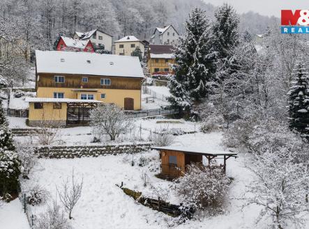 Nabízíme dům s dlouhou historií umístěný na východním svahu Žlebského údolí, který zhlíží na vinoucí se Labe a masiv Růžového hřebene. Okolní příroda a vodní hladina spoluvytvářejí pocit klidu a zpomalují čas. Možná právě pro tyto pocity si naši předci zvolili toto místo za svůj domov. Je jen na vás, zda zde budete bydlet, rekreovat se či dům pronajímat. Stavba nabízí prostor pro velkou rodinu, kdy v přízemí naleznete prostorné zádveří a chodbu, ze které vlevo vstupujete do velké místnosti, která slouží jako obývací pokoj, jídelna a kuchyně zároveň. Vpravo pak je prostorná koupelna a toaleta s komorou. Ve 2 NP se nachází klidová část v podobě 3 pokojů. Na své využití čeká půda, která nyní slouží jako úložný prostor. V suterénu je technická místnost, dílna a původní hospodářská část. Pod domem je umístěn dřevník s krytou pergolou. Velká zahrada poskytuje dostatek místa pro vaši relaxaci, stejně tak pro vaše výpěstky či domácí mazlíčky. Všechny služby najdete ve 2,5 km vzdáleném Děčíně.