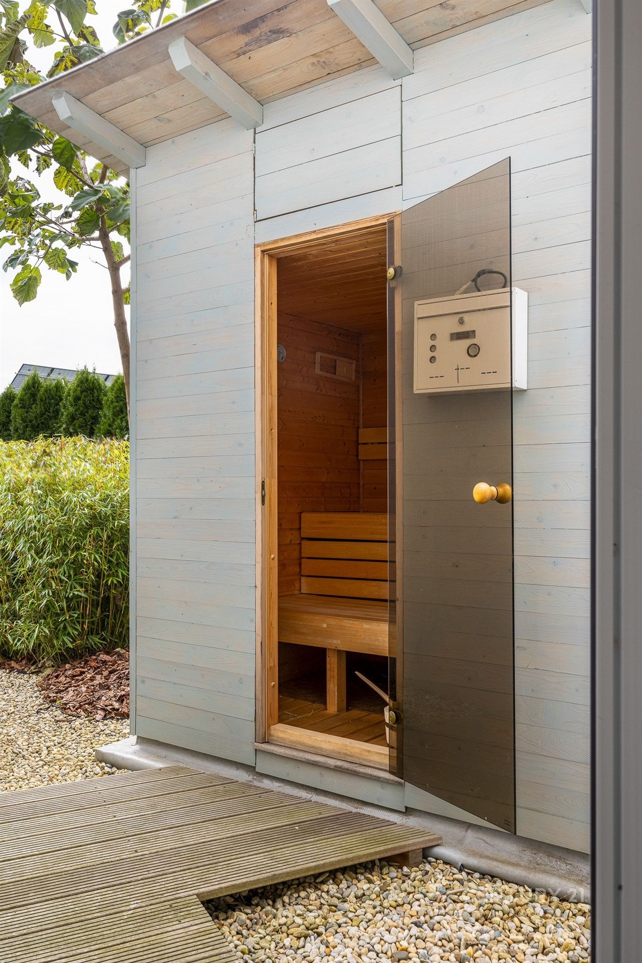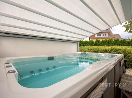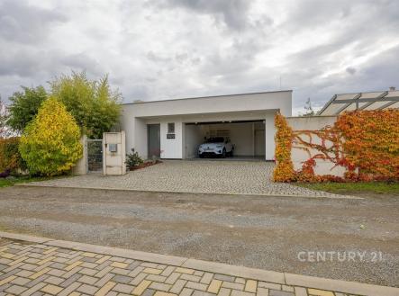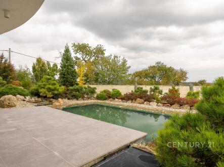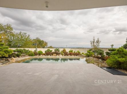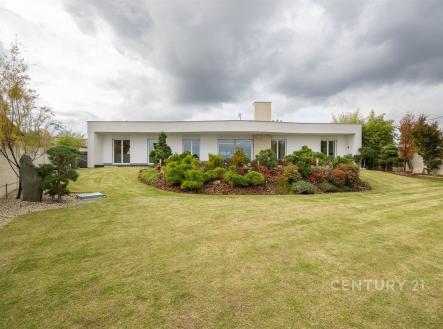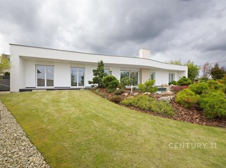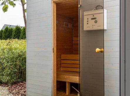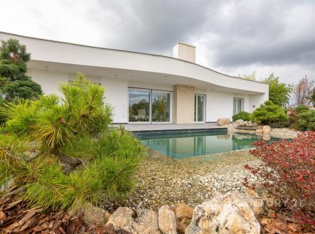 Prodej moderního rodinného domu 5+kk s terasou, garáží, saunou, bazénem a zahradním biotopem. K Moči