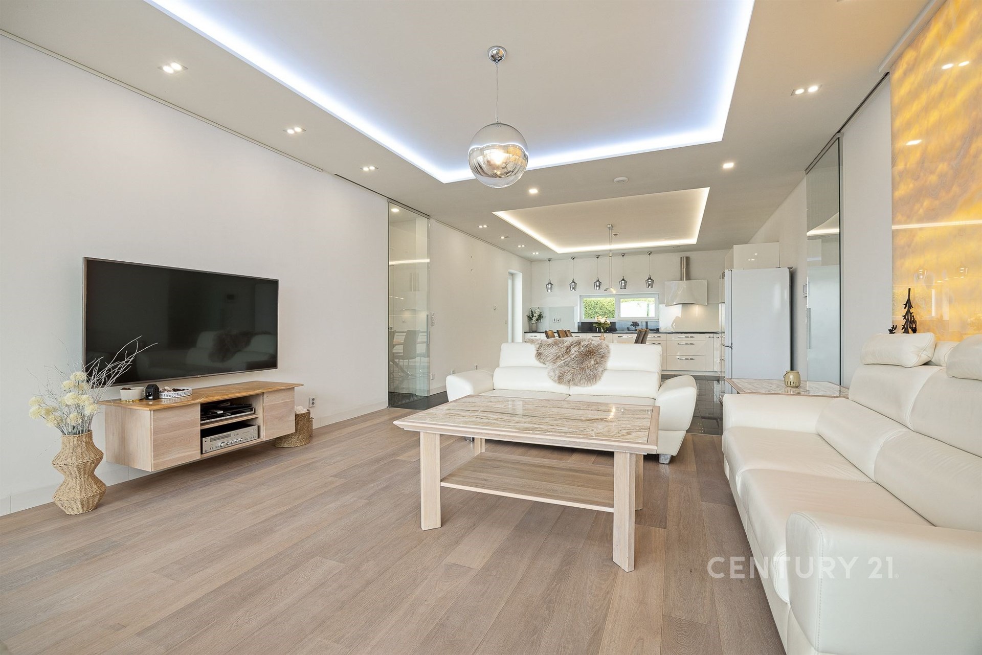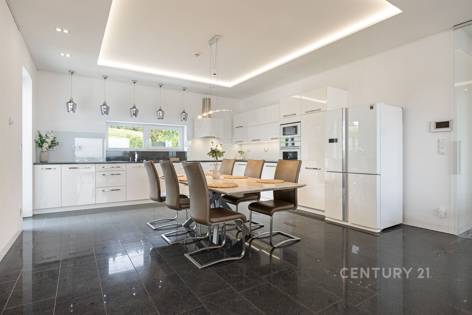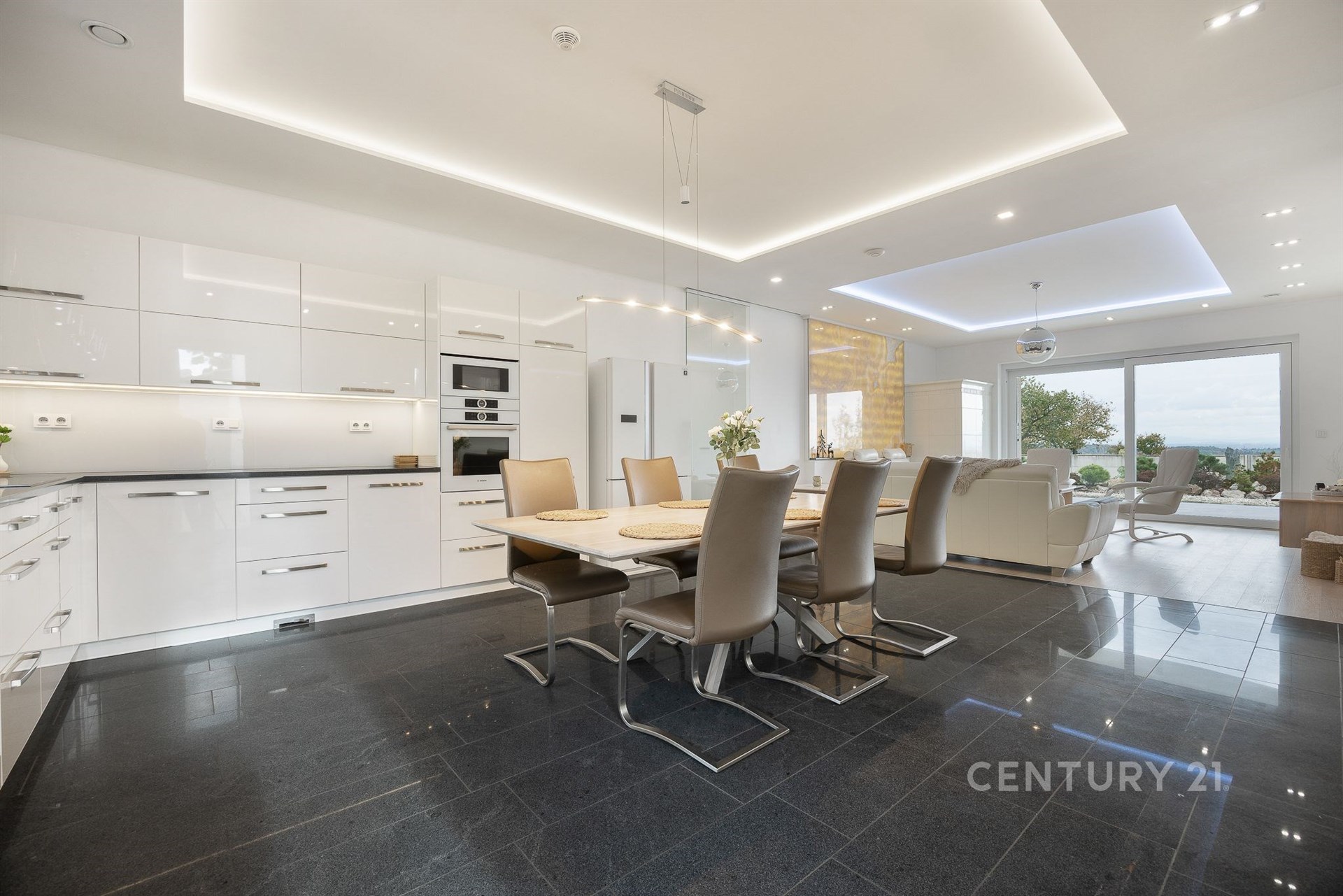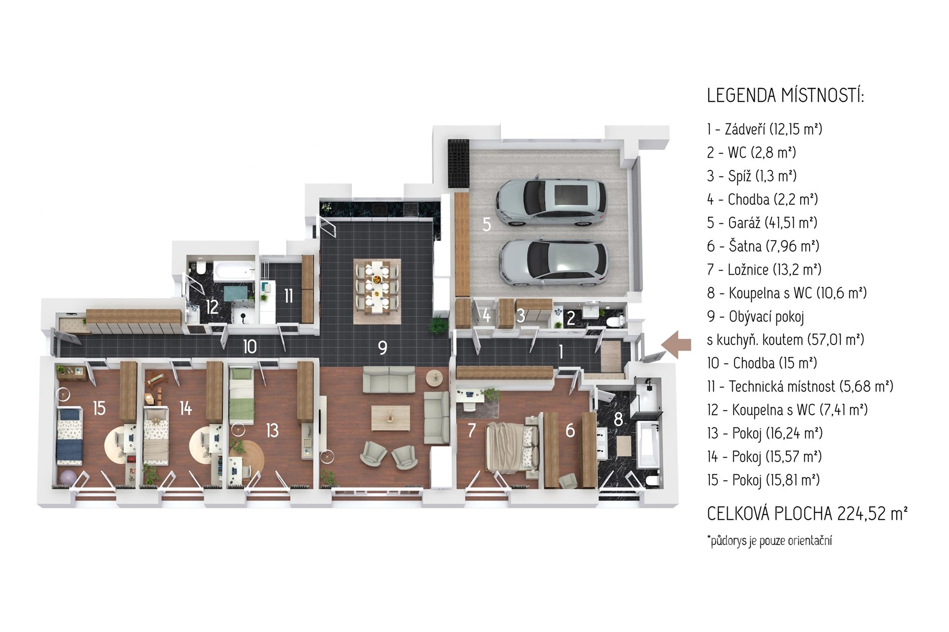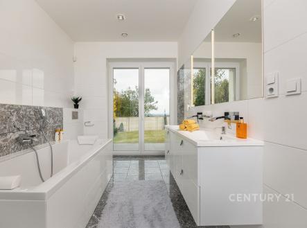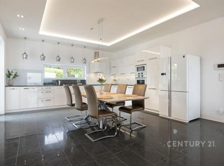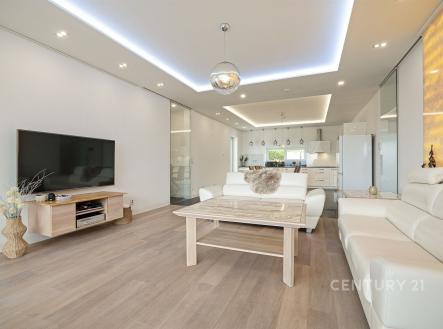 Nabízíme výjimečný přízemní dům navržený ve spolupráci architektů Ing. arch. Martina Náhlovského a Ing. arch. Lukáše Richtera ze studia MASTER DESIGN, kteří spojili moderní technologie, přírodní materiály a promyšlenou dispozici do harmonického celku. Objekt s dispozicí 5 + kk a užitnou plochou 224,5 m² stojí na pozemku o velikosti 1 000 m² v klidné části obce Děhylov. Dominantou je velkorysý obývací pokoj s kuchyní a jídelnou o rozloze 57 m², jehož atmosféru podtrhují designová kachlová kamna a přímý vstup na terasu se zahradním koupacím biotopem obklopeným skalkou. Vedle stavby se nachází vyhřívaný bazén s protiproudem a masážními tryskami, zastřešený elektricky ovládanou pergolou s boční clonou, která umožňuje využití i v chladnějším počasí. Na zahradě nechybí ani samostatná sauna – ideální místo pro relaxaci, klid a soukromí. V obytné části se nachází čtyři ložnice, tři koupelny, tři toalety, technická místnost, šatna, spíž a garáž o velikosti 41,5 m² s přímým vstupem. Interiér je proveden v nadstandardní kvalitě – žulové a dřevěné podlahy, omítky Weber, SDK podhledy a velká francouzská okna s trojskly, která propojují vnitřní a venkovní prostor a zajišťují dostatek denního světla. Všechna okna jsou opatřena bezpečnostní fólií. Každý detail byl zvolen s ohledem na estetiku i praktičnost, takže celek působí elegantně a přitom útulně. Stavba je realizována z cihelného systému HELUZ Family 50 2in1 s výbornou tepelnou izolací. O vytápění a ohřev vody se stará tepelné čerpadlo napojené na podlahové topení, nechybí rekuperace pro zdravé a úsporné větrání. Součástí je fotovoltaická elektrárna Solidsun o výkonu 19,8 kW s bateriovými úložišti Pylontech (14,2 kWh) a wallbox pro elektromobil. Plochá střecha je izolovaná EPS 150 S a hydroizolací DEKPLAN 76. Celý objekt chrání kamerový systém, alarm Paradox a je připraven na chytré řízení domácnosti. Koncept bydlení spojuje energetickou úspornost a částečnou soběstačnost. K dispozici je vlastní studna, domovní čistírna odpadních vod i obecní vodovod, což zajišťuje minimální náklady na provoz. Výroba elektřiny z fotovoltaiky s bateriovým úložištěm doplňuje systém udržitelného a ekologického fungování. Orientace na jihozápad zaručuje dostatek světla a tepla po celý den, terasa poskytuje klidné soukromí a příjemný výhled do zeleně. Ulice K Močidlům je tichá, s minimálním provozem, a patří mezi nejžádanější lokality v Děhylově. Obec leží mezi Ostravou a Opavou a nabízí kompletní občanskou vybavenost – školu, školku, obchod, restauraci i vlakové spojení. V okolí jsou cyklostezky, řeka Opava, Hlučínské jezero i rozsáhlé lesy ideální pro aktivní odpočinek i rodinné procházky. Tento dům nabízí prostor, klid i atmosféru, kterou nelze popsat – tu musíte zažít osobně. Domluvte si prohlídku a poznejte místo, kde se z pocitu domova stává skutečný zážitek.