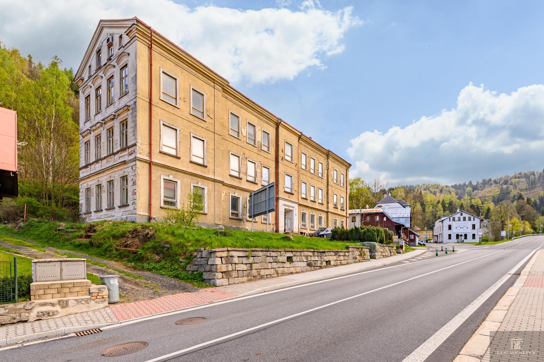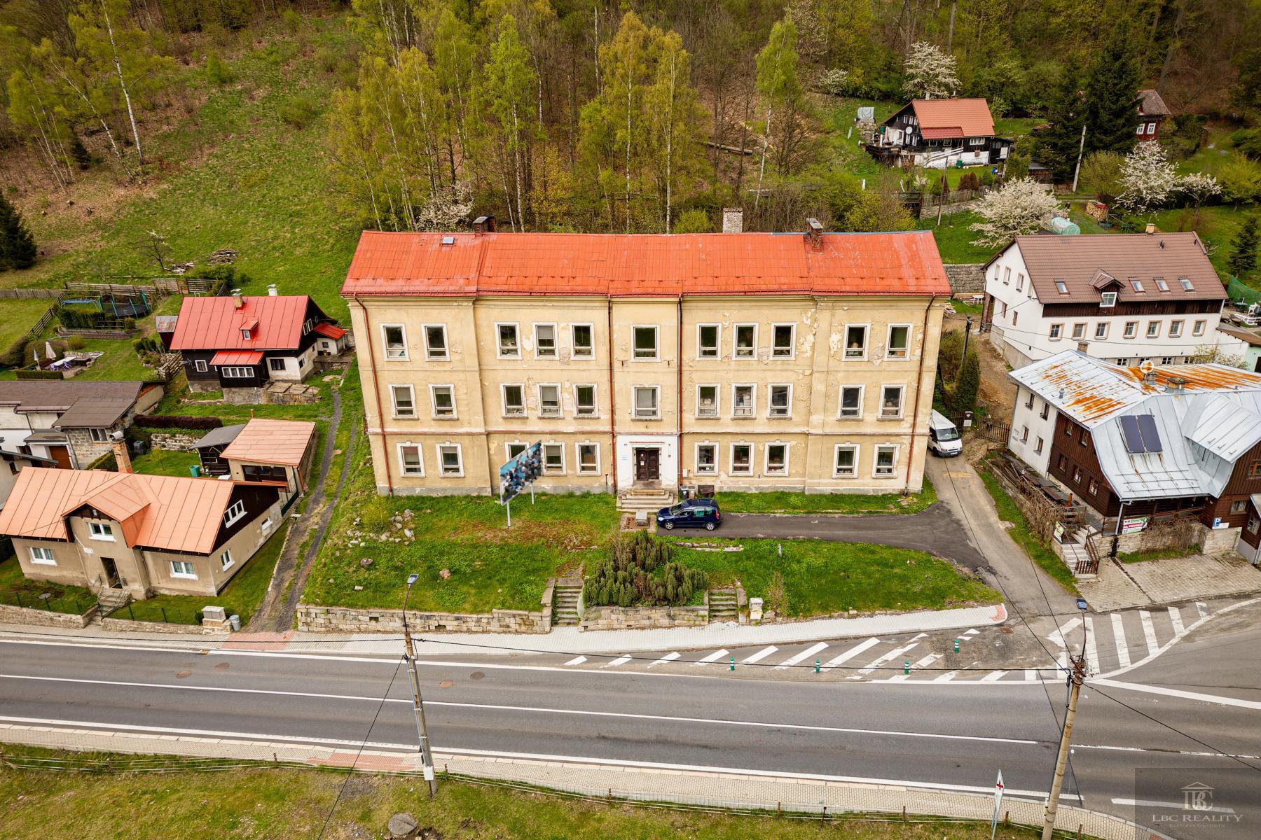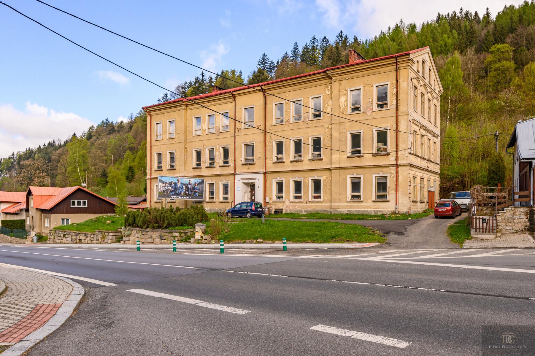 Nabízíme exkluzivně na prodej bývalou školní budovu v Desné III., nyní sloužící pro výrobní prostory. Nabízí se velké množství využití: jako administrativní budova, výrobní, prostory případně pro seniorský dům, developerské projekt nových bytů nebo horských apartmánů, které nabídne skvělou dostupnost do horských středisk Harrachov, Kořenov, Paseky. Velký pozemek nabízí dostatek budoucích parkovacích míst, zahrada za domem další využití. Voda obecní, kotel na tuhá paliva, nákladní výtah, septik. Možnost napojení se na kanalizaci v chodníku pod domem, stejně jako plynová přípojka. Vjezd k domu z obecní komunikace, vedoucí jako hlavní tah Desná- Harrachov. Předpokládá se rekonstrukce objektu. Samotná budova je ve velmi dobrém stavu, ale uvitá obnovu elektroinstalací, nové rozvody vody do plastu, nový otopný systém, interiérově zastaralá. Pro více informací kontaktujte kancelář.. Veškeré zveřejněné údaje obsažené v tomto inzerátu mají pouze informativní charakter a nejsou nabídkou ve smyslu § 1731 nebo § 1732 občanského zákoníku, ani se nejedná o veřejný příslib dle § 1733 občanského zákoníku.