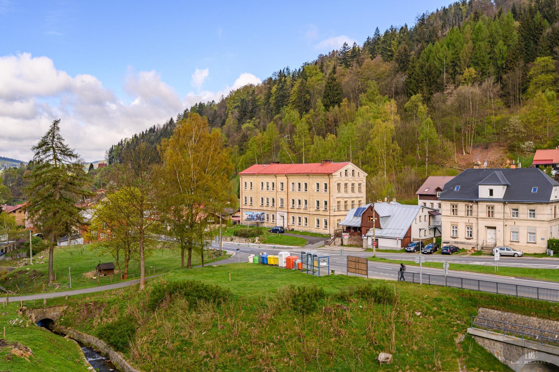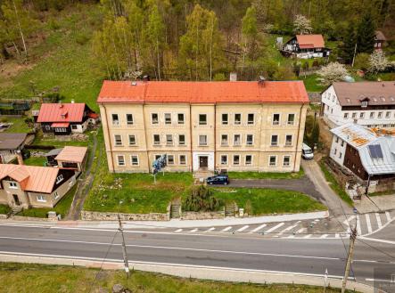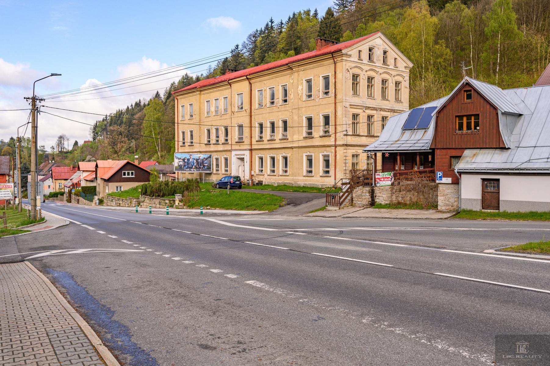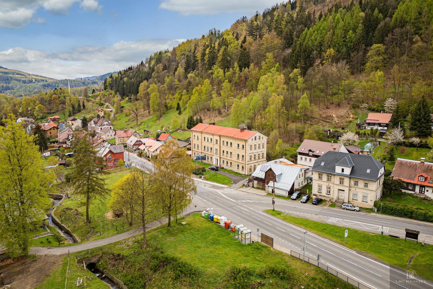 Nabízíme exkluzivně na prodej bývalou školní budovu v Desné III., nyní sloužící pro výrobní prostory. Nabízí se velké množství využití: jako administrativní budova, výrobní, prostory případně pro seniorský dům, developerské projekt nových bytů nebo horských apartmánů, které nabídne skvělou dostupnost do horských středisk Harrachov, Kořenov, Paseky. Velký pozemek nabízí dostatek budoucích parkovacích míst, zahrada za domem další využití. Voda obecní, kotel na tuhá paliva, nákladní výtah, septik. Možnost napojení se na kanalizaci v chodníku pod domem, stejně jako plynová přípojka. Vjezd k domu z obecní komunikace, vedoucí jako hlavní tah Desná- Harrachov. Předpokládá se rekonstrukce objektu. Samotná budova je ve velmi dobrém stavu, ale uvitá obnovu elektroinstalací, nové rozvody vody do plastu, nový otopný systém, interiérově zastaralá. Pro více informací kontaktujte kancelář.. Veškeré zveřejněné údaje obsažené v tomto inzerátu mají pouze informativní charakter a nejsou nabídkou ve smyslu § 1731 nebo § 1732 občanského zákoníku, ani se nejedná o veřejný příslib dle § 1733 občanského zákoníku.