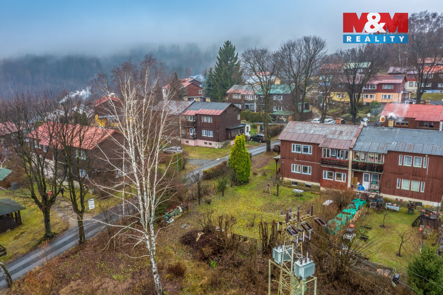 Nabízíme k prodeji rodinný dům se dvěma byty a pozemky o celkové výměře 476 m2 v Desné v Jizerských horách. Nemovitost je tzv. finský domek a je součástí několika stejných staveb na krásném klidném místě s výhledem v místní části Desná I. Celý objekt je podsklepený, v přízemí se nachází bytová jednotka 2+1 s pracovnou a zimní zahradou. V 1. patře je téměř identický byt 2+1 s balkonem. Obě bytové jednotky mají samostatný vstup. Na udržované zahradě stojí přístřešek pro automobil a sklad na nářadí. Dům je vhodný k trvalému bydlení i rekreaci díky mnoha ski areálům v těsné blízkosti, může ale sloužit i jako investice k pronajímání.