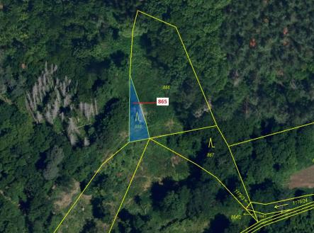 Lesní pozemek o výměře 111 m2, podíl 1/1, katastrální území Malý Dešov, obec Dešov, obec s rozšířeno