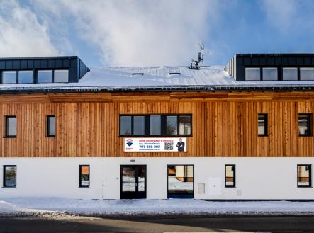 Exkluzivně Vám nabízíme bezbariérový apartmán dispozičně řešený jako 2+KK (možnost úpravy na dispozici 3+kk) který je situovaný v 1.NP apartmánového domu. Užitnou plochu jednotky tvoří předsíň, koupelna s WC, ložnice-obývací pokoj, jídelna s kuchyní o celkové výměře 52m2. Možnost odpočtu DPH ve výši 21%. K apartmánu náleží vlastní parkovacího stání. Samotný apartmán je zkolaudovaný jako bezbariérový - vhodný pro osoby s TP. V případě zájmu můžeme zařídit montáž uzpůsobené kuchyňské linky, vestavěné skříně apod. Koupelna je rozměrově uzpůsobená a vybavená sanitou Villeroy & Boch, kvalitní vinylové podlahy Opus Wood, dveře Sapeli, okna v kombinaci hliník-dřevo opatřené troj skly, elektronický termostat. Vytápění je zajištěno tepelným čerpadlem země-voda, podlahovým vytápěním což v komplexu dodává apartmánu eleganci, uživatelský komfort a velmi nízké náklady na energie. Apartmánový dům disponuje vlastním výtahem, sušárnou a prostornou halou kde jsou nainstalovány schránky na klíče pro každý z apartmánů. Hlavní vchodové dveře do budovy jsou vybaveny kódovacím zámkem pro bez klíčový vstup. V rámci apartmánového komplexu se nachází samostatná budova se společnou lyžárnou, kolárnou, hernou a kuchyňkou. Strategické poloha v samotném centru obce umožnuje dosah turistických tras, dětského hřiště či stylových restaurací, a to vše v docházkové vzdálenosti. Tento apartmán může sloužit jak pro relaxaci či trvalé bydlení. Servis úklidu apartmánů je možný přes správcovskou firmu. Dostupnost z Prahy je po dálnici D11 za cca 2hodiny a z Hradce Králové za cca 50 minut. V případě potřeby zajistíme také profesionální financování nákupu nemovitosti (individuálně i bez nutnosti zajištění nemovitosti). Pro doplnění informací a domluvení prohlídky mě kdykoliv kontaktujte.