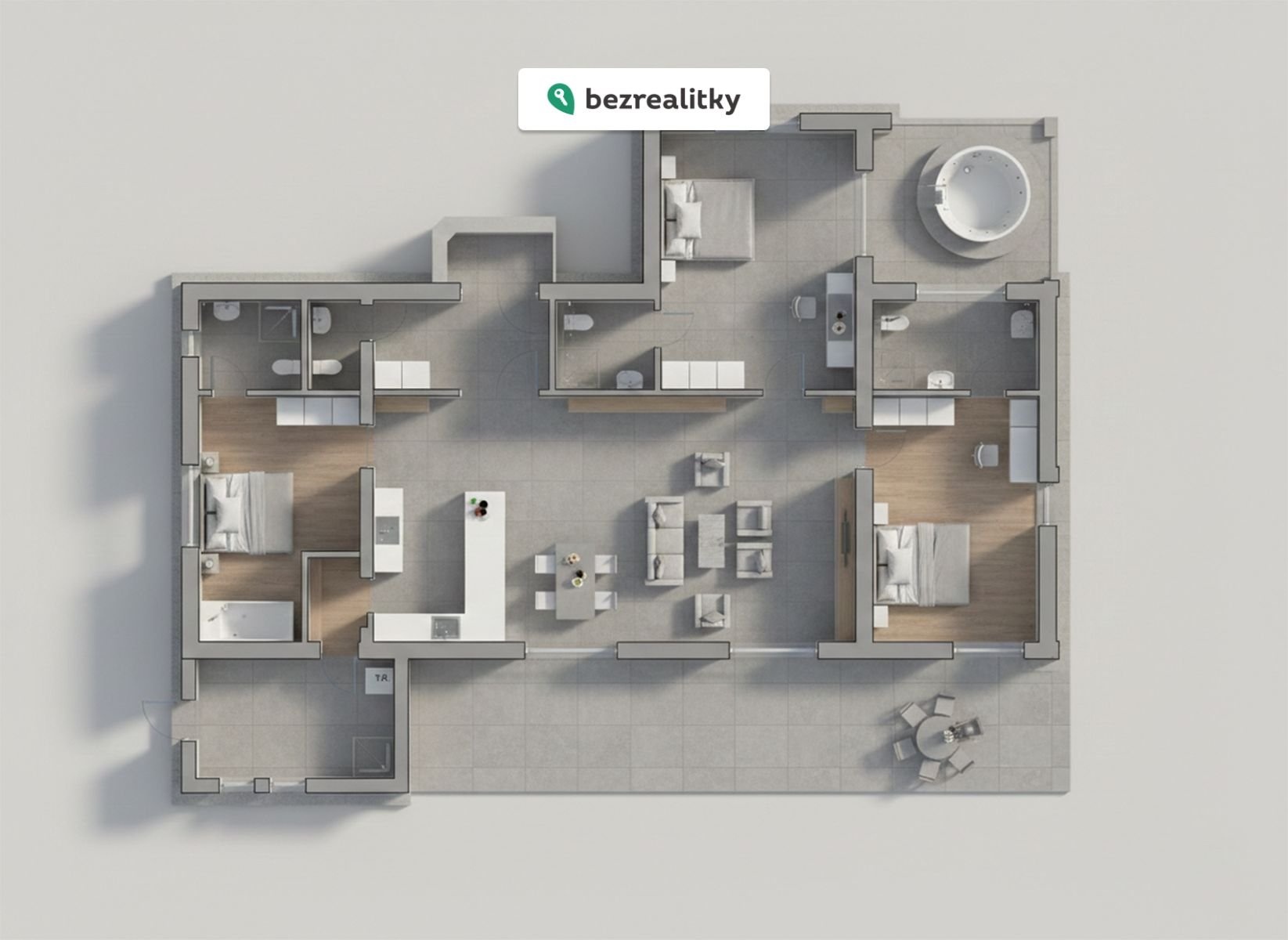 Moderní rodinný dům 4+kk po kompletní rekonstrukci, kde má každá ložnice vlastní koupelnu, se nachází v klidné části Dětmarovic, v docházkové vzdálenosti od centra obce. Dům stojí na pozemku o celkové výměře 1 246 m² (197 m² zastavěná plocha + 1 049 m² zahrada). Podlahová plocha domu činí cca 158,9 m². Dispozice a komfort Dominantou domu je velkorysý obývací prostor s kuchyní a jídelnou o velikosti 57,27 m² s přímým vstupem na terasu a zahradu. Soukromá část domu nabízí nadstandardní řešení: 3 samostatné ložnice každá ložnice má vlastní koupelnu s WC dvě ložnice mají přímý vstup na terasu Dále je k dispozici: zádveří samostatné WC pro hosty spíž technická místnost / prádelna Vstup do domu je řešen třemi schody (možnost budoucí úpravy na bezbariérový přístup). Technické provedení Dům prošel kompletní rekonstrukcí: tepelné čerpadlo podlahové vytápění v celém domě klimatizace v každé místnosti (samostatně ovladatelná) nová elektroinstalace nové rozvody vody a odpadů nová vodovodní přípojka nová kanalizace napojená na vlastní ČOV plastová okna s trojskly nová keramická střecha BRAMAC (grafit) zateplení střechy i fasády nové koupelny a keramické podlahy Dům je energeticky úsporný a technicky připraven bez nutnosti dalších zásadních investic. Stav a dokončení Interiér domu je již hotový. Aktuálně se dokončují venkovní úpravy, které budou pokračovat na jaře. Rekonstrukce bude kompletně dokončena v 06/2026 a dům bude předán po kolaudaci. Kupující má možnost: zakoupit nemovitost již nyní ve stávajícím stavu a dokončení realizovat ve vlastní režii nebo převzít dům kompletně dokončený a zkolaudovaný (v tomto případě bude kupní cena navýšena o náklady na finální práce) Možnost volby finální barvy fasády dle vlastních preferencí. Další výhody parkování pro 3 vozy na pozemku klidná lokalita kompletní občanská vybavenost v obci dobrá dostupnost do okolních měst Tato nemovitost je ideální pro rodinu, která hledá moderní, komfortní bydlení s dostatkem soukromí a technologií, které zajistí nízké provozní náklady. Pro více informací nebo domluvení prohlídky mě neváhejte kontaktovat. Tato nemovitost je určena výhradně přímým zájemcům o koupi. Na inzerát můžete také reagovat přímo na webu Bezrealitky.