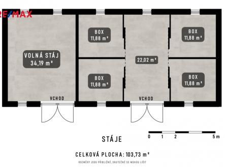 Soukromí, prostor, příroda a ideální podmínky pro koně i jejich majitele. Nabízíme vám k prodeji tuto stáj pro koně s rodinným domem, která všechny tyto požadavky bez problémů splňuje. Nachází se v nádherném, klidném prostředí na okraji obce Dětmarovice, obklopená lesy a loukami, jež nabízejí téměř neomezené možnosti pro vyjížďky. Na pozemcích o rozloze 1,5 ha vzniklo místo, které kombinuje pohodlí rodinného bydlení s menší stájí pro chov koní. Stáj byla postavena před deseti lety a je ve výborném stavu. Najdete zde čtyři prostorné boxy (3,6 × 3,3 m) a stáj pro volné ustájení (6,55 × 5,3 m) až pro čtyři koně, kterou lze jednoduše upravit na další boxové ustájení. K vybavení patří: * písková, odvodněná kruhovka, * dřevěný přístřešek na pastvině (3 × 9 m) se stříškou na kulaté balíky, * automatické napáječky ve stáji i ve výběhu, * vlastní studna s pitnou vodou, * krosové překážky, * dostatek místa pro parkování aut, * vytápěná sedlovna. Majitelé jistě ocení minimální počet sousedů, spolehlivé dodavatele krmiva a steliva a klidné zázemí pro každodenní provoz. V okolí se nachází krásné, ničím nerušené vyjížďky v malebném prostředí, které umožňuje zážitky v sedle téměř bez omezení. Tyto podmínky jsou ideální jak pro rekreační ježdění, tak pro trénink sportovních koní – například dostihových či všestrannostních. Rodinný dům, který je součástí areálu a prošel v posledních letech kompletní rekonstrukcí, má novou střechu s krytinou Satjam, plastová okna, podlahové topení i nové rozvody vody, elektřiny a odpadů. Vytápění je řešeno krbem s výměníkem nebo kotlem na tuhá paliva se zásobníkem na uhlí či pelety. Na vrchním patře zatím není rekonstrukce dokončena, lze ji však snadno dokončit a tím rozšířit obytné prostory, případně patro využít například jako společenskou místnost. Dům je připraven k okamžitému bydlení – stačí se nastěhovat a začít si užívat klidný život v přírodě. Pokud hledáte místo, kde budou koně i lidé opravdu spokojení, rád vás přivítám na osobní prohlídce.